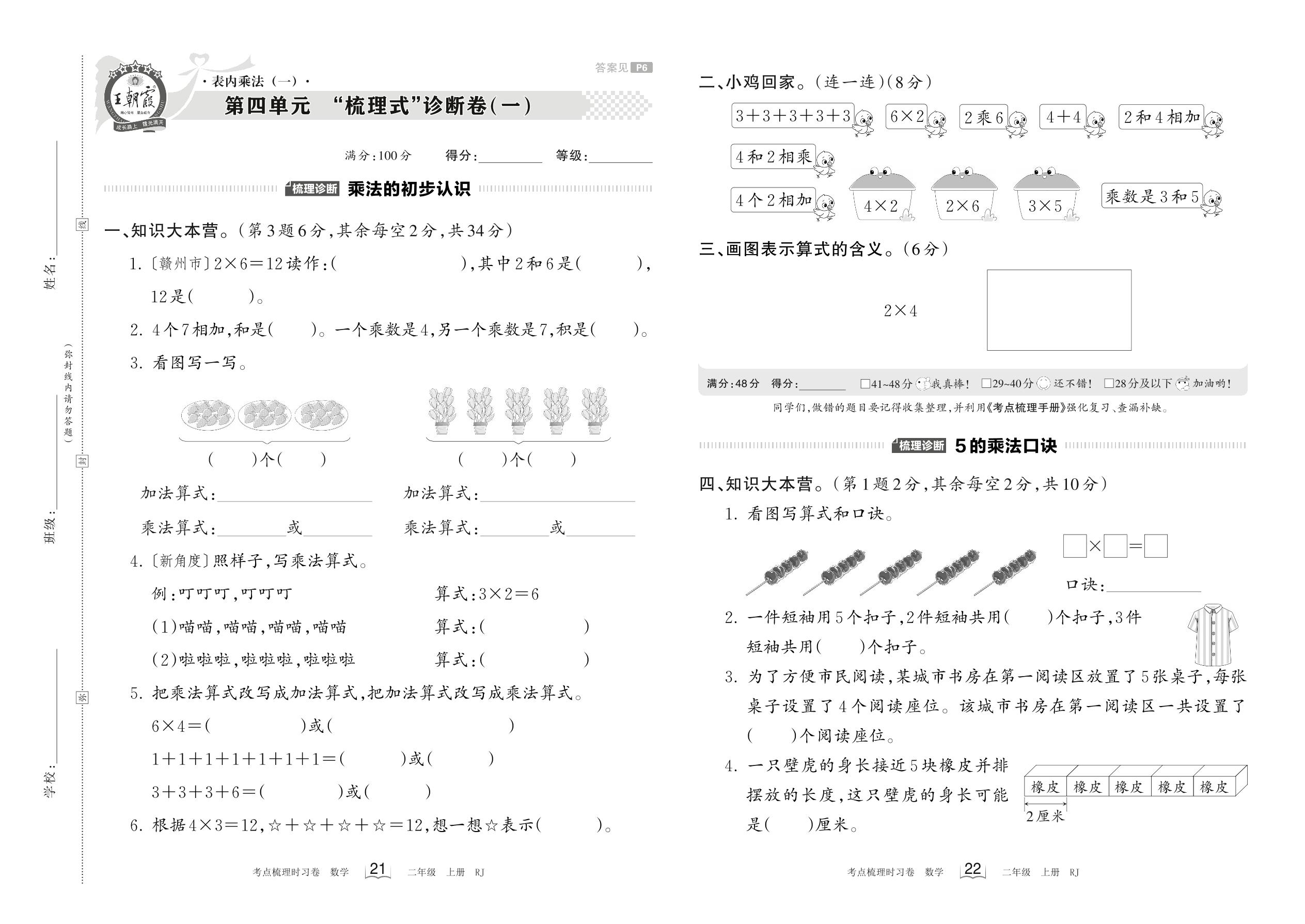 2023上册二年级数学人教版 第四单元 “梳理式”诊断卷(一)