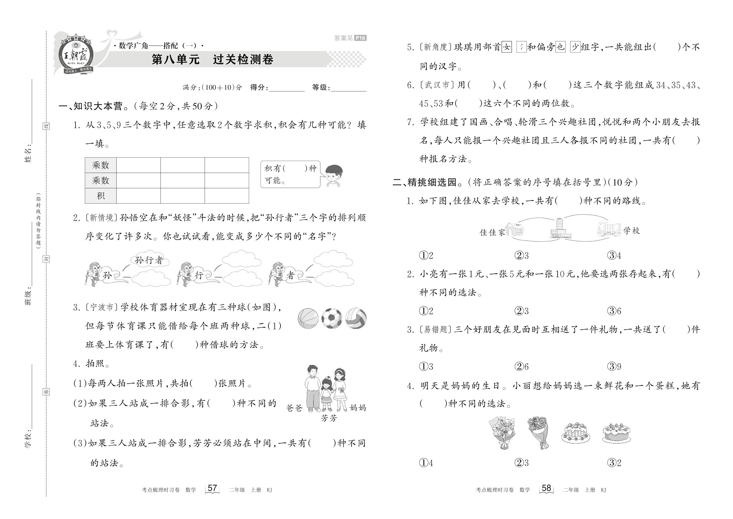 2023上册二年级数学人教版 第八单元 过关检测卷