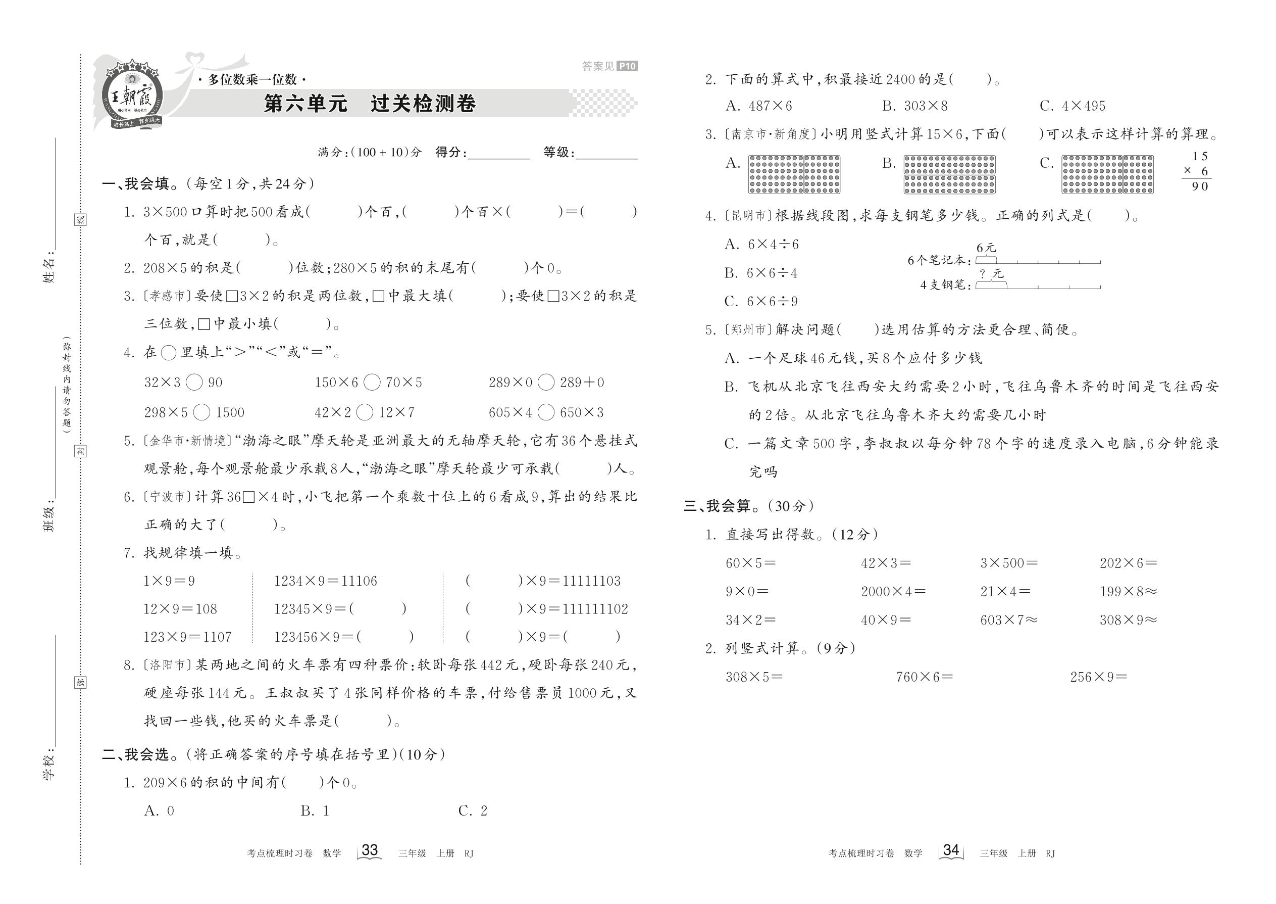 2023上册三年级数学人教版 第六单元 过关检测卷