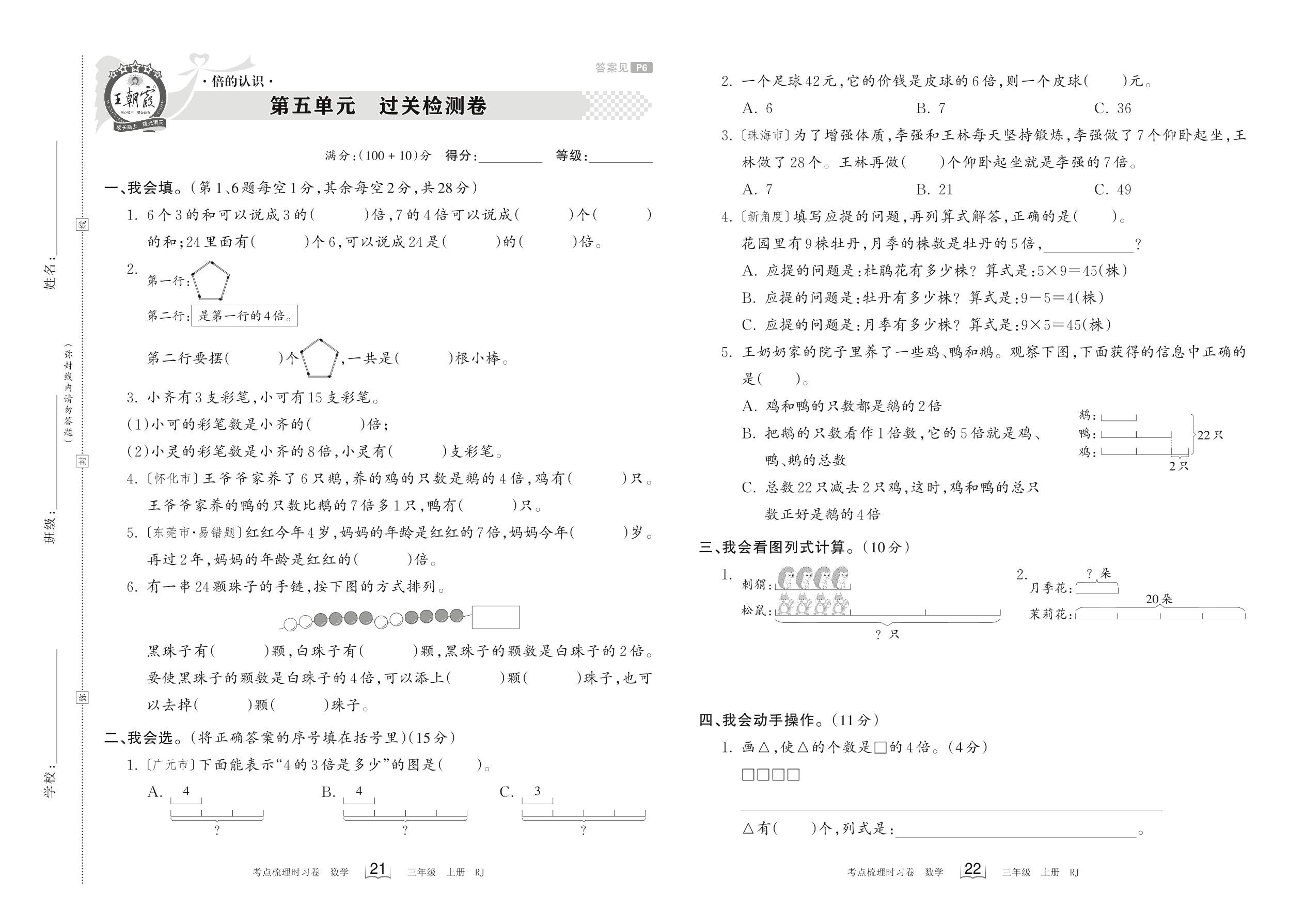 2023上册三年级数学人教版 第五单元 过关检测卷
