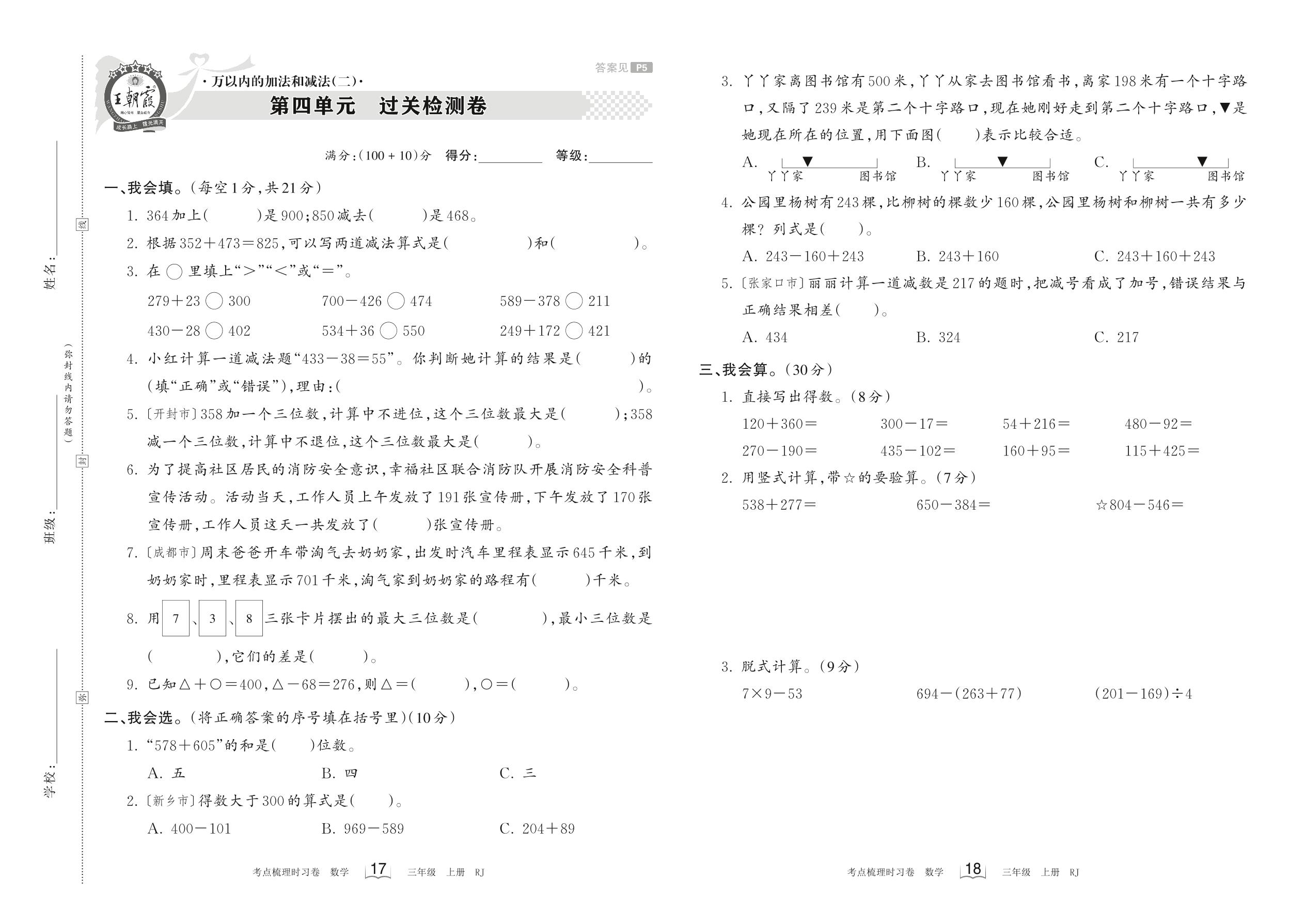 2023上册三年级数学人教版 第四单元 过关检测卷