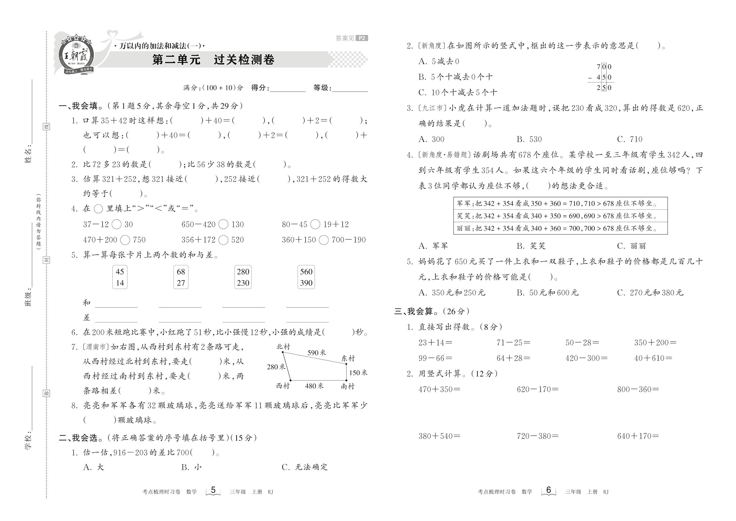 2023上册三年级数学人教版 第二单元 过关检测卷