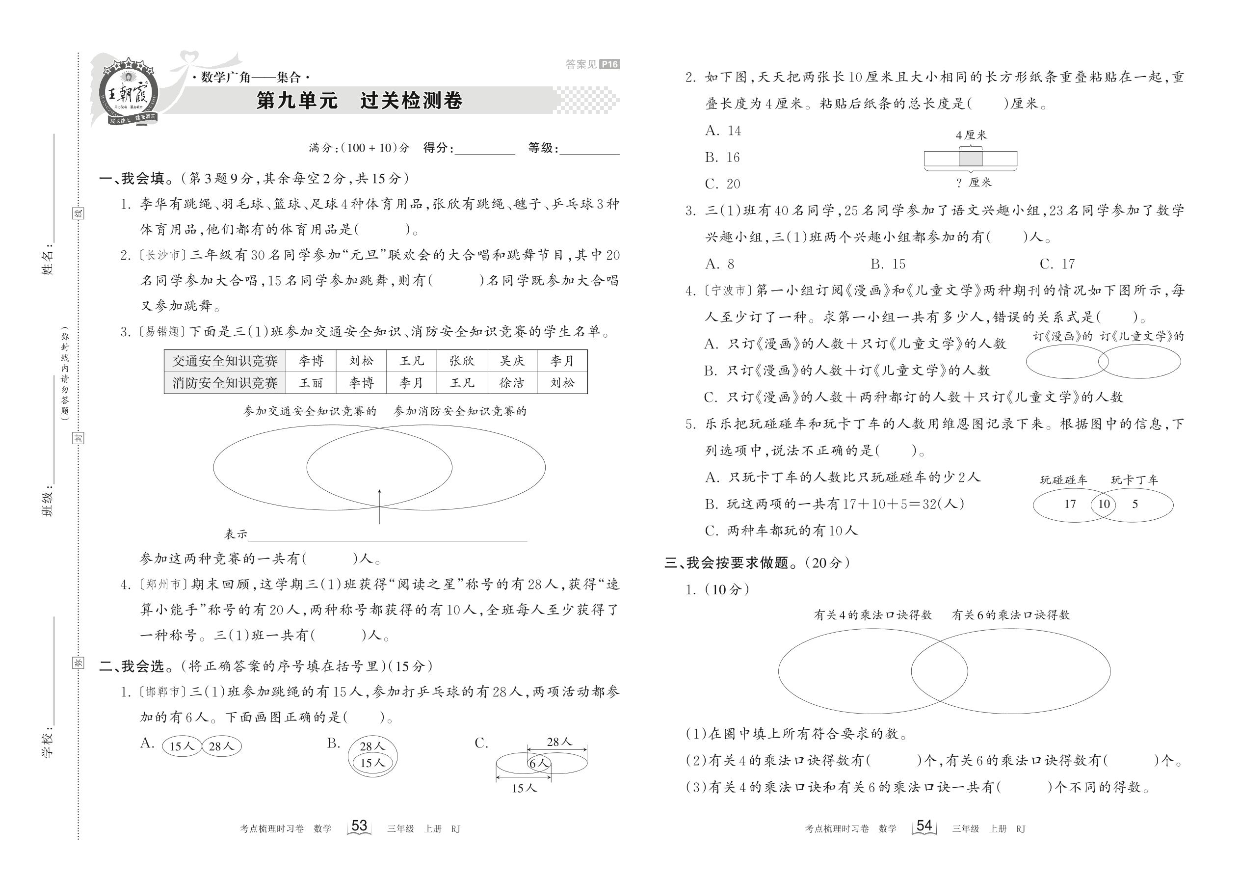 2023上册三年级数学人教版 第九单元 过关检测卷