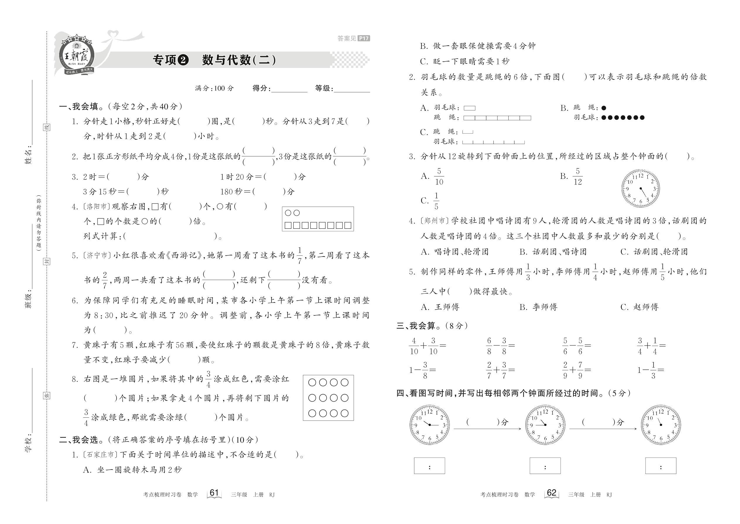 2023上册三年级数学人教版 专项2 数与代数(二)