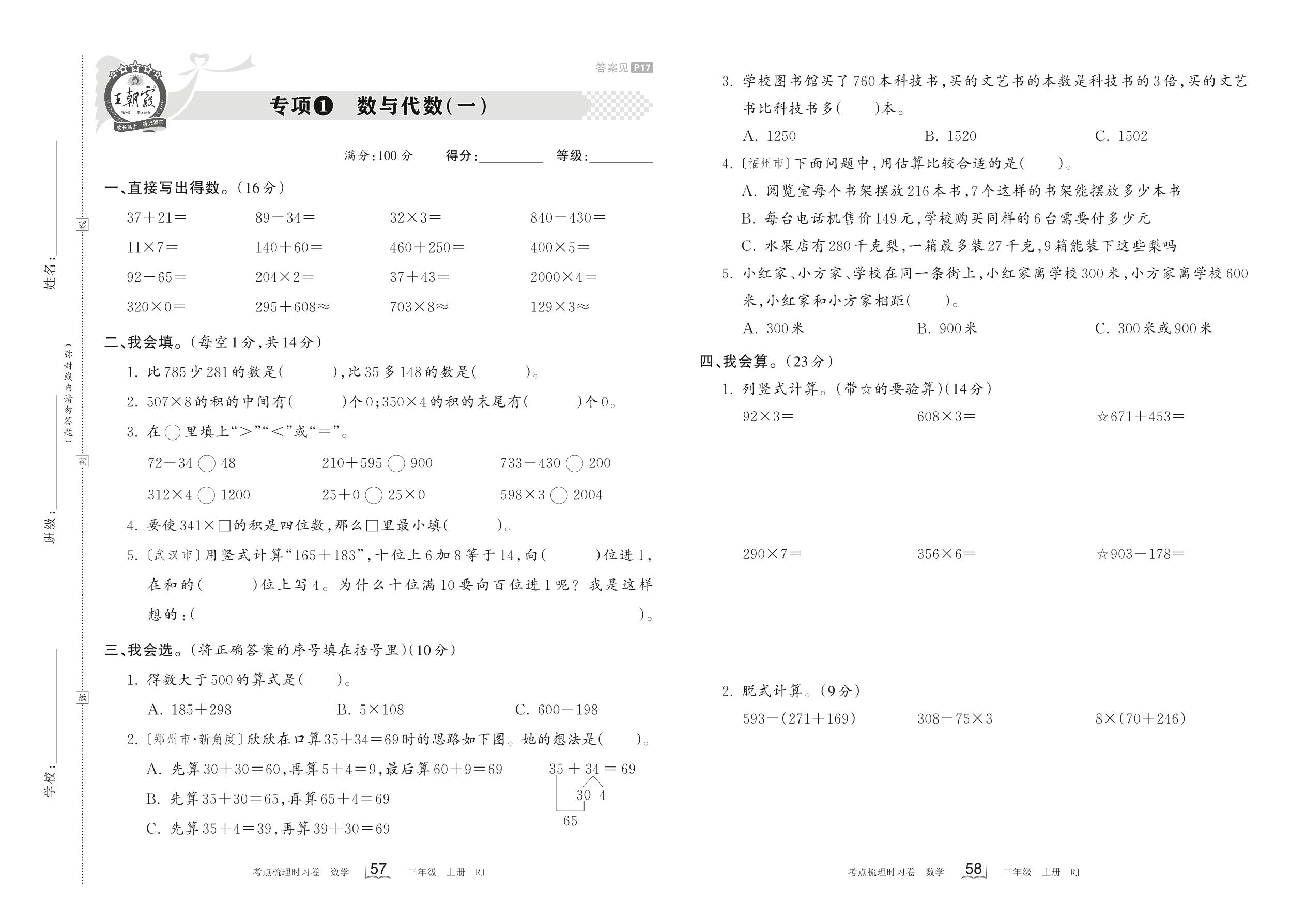 2023上册三年级数学人教版 专项1 数与代数(一)