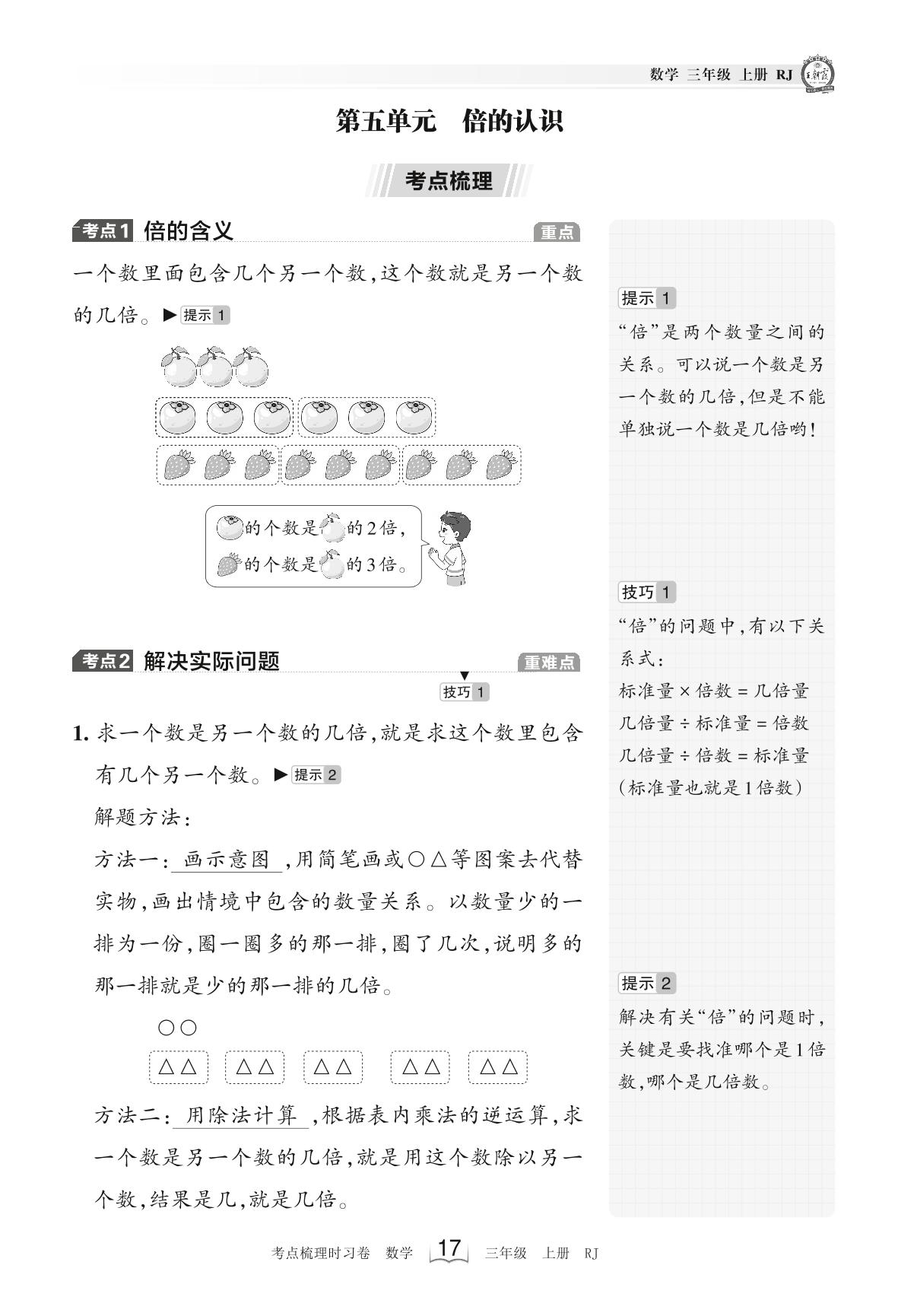 2023上册三年级数学人教版 考点梳理手册——第五单元 倍的认识