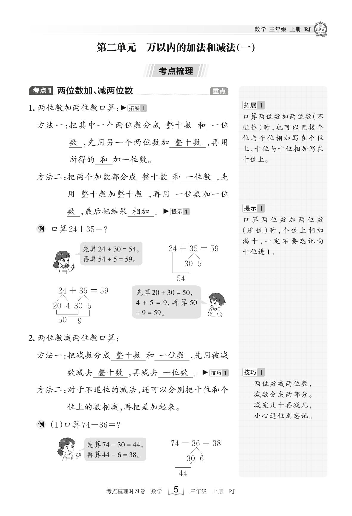 2023上册三年级数学人教版 考点梳理手册——第二单元 万以内的加法和减法(一)