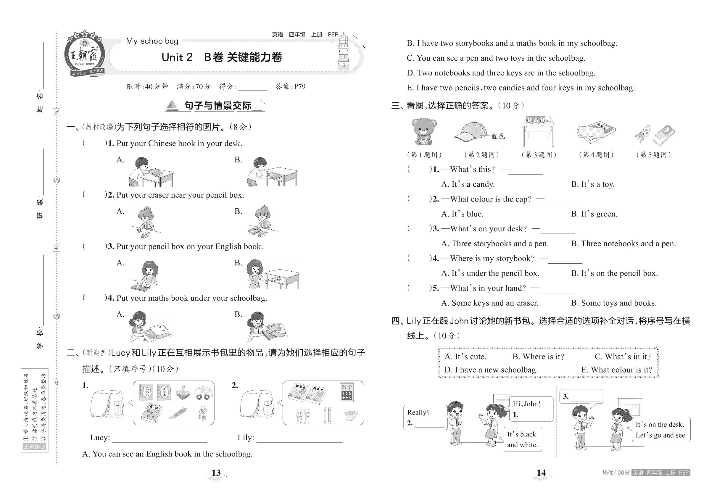 2023上册四年级英语人教PEP版 Unit 2 B卷 关键能力卷