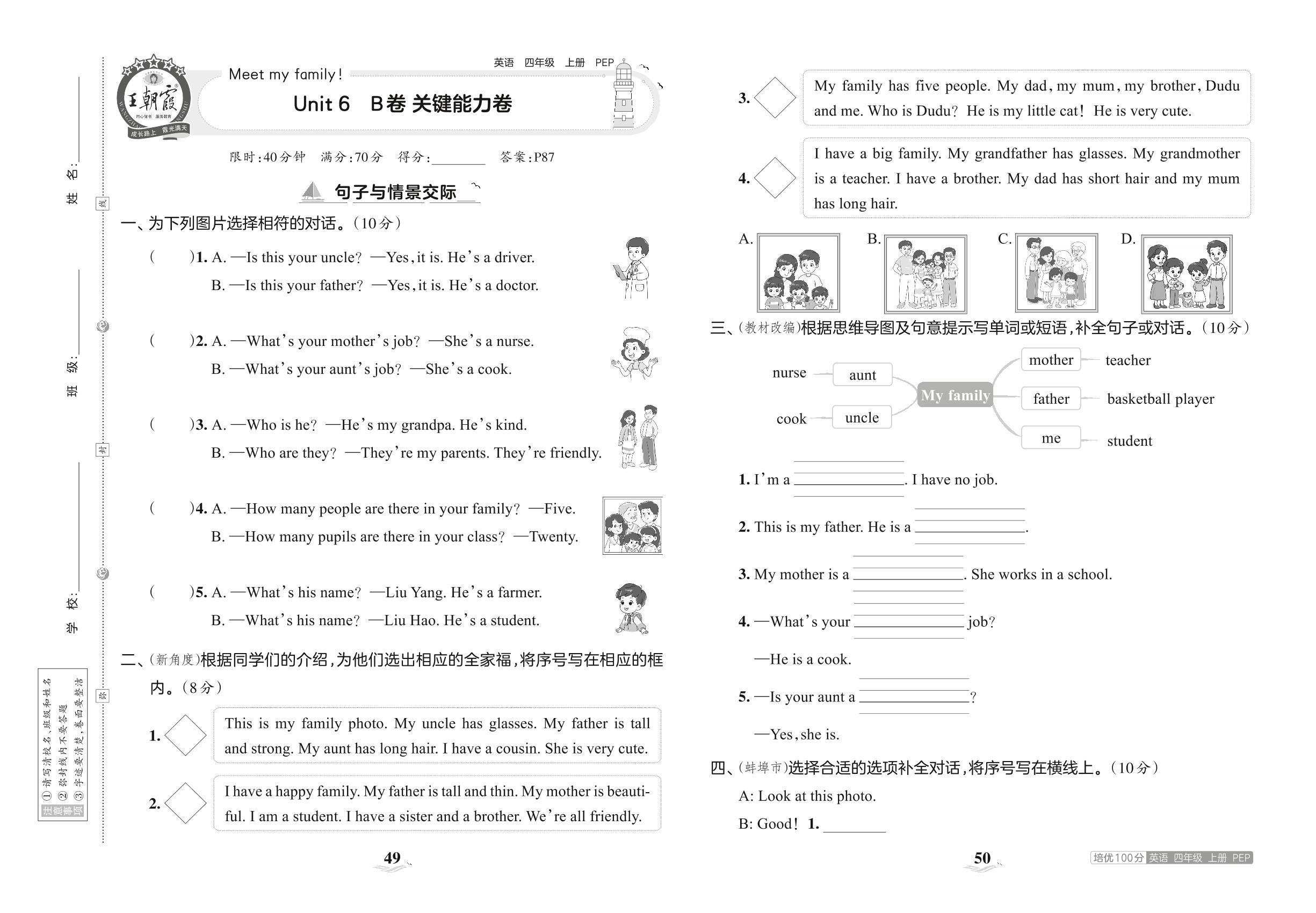 2023上册四年级英语人教PEP版 Unit 6 B卷 关键能力卷