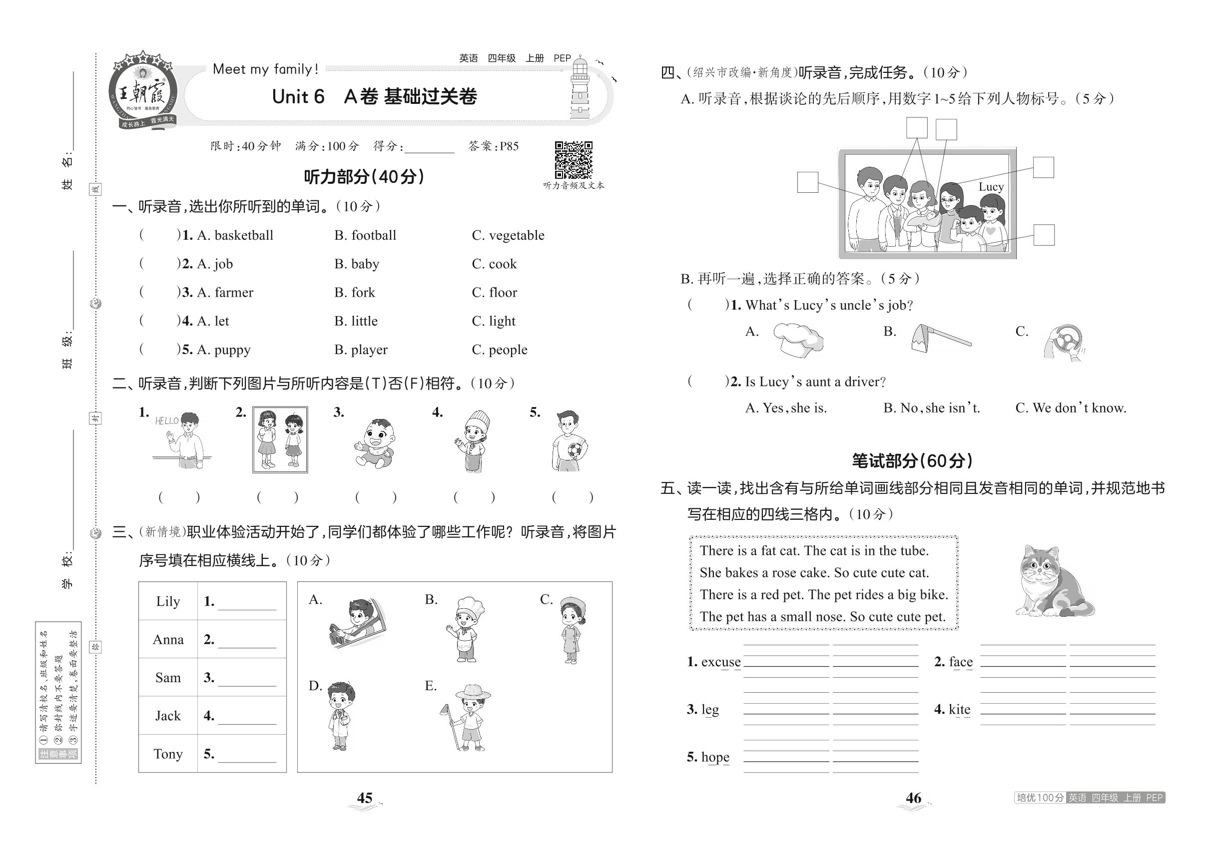 2023上册四年级英语人教PEP版 Unit 6 A卷 基础过关卷