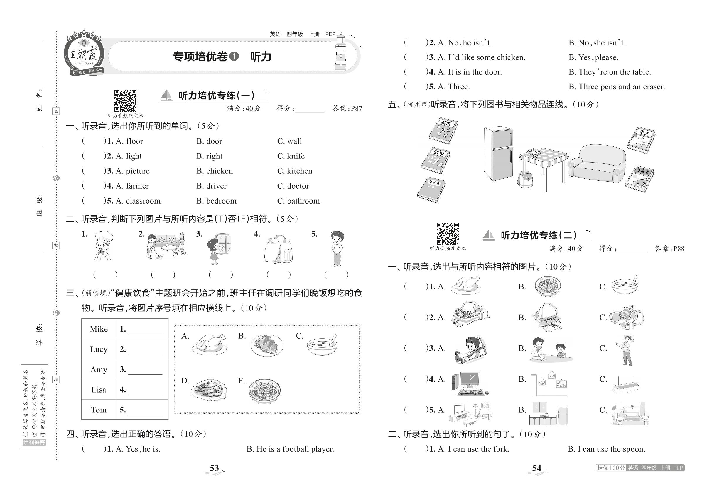 2023上册四年级英语人教PEP版 专项培优卷 1 听力