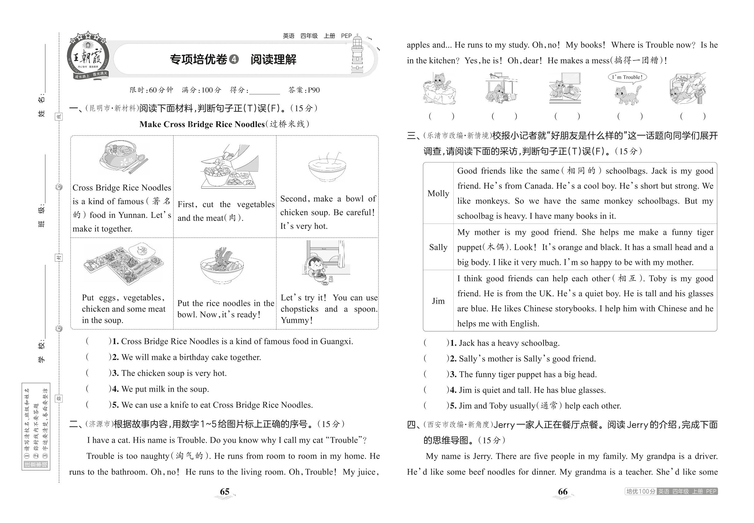 2023上册四年级英语人教PEP版 专项培优卷 4 阅读理解