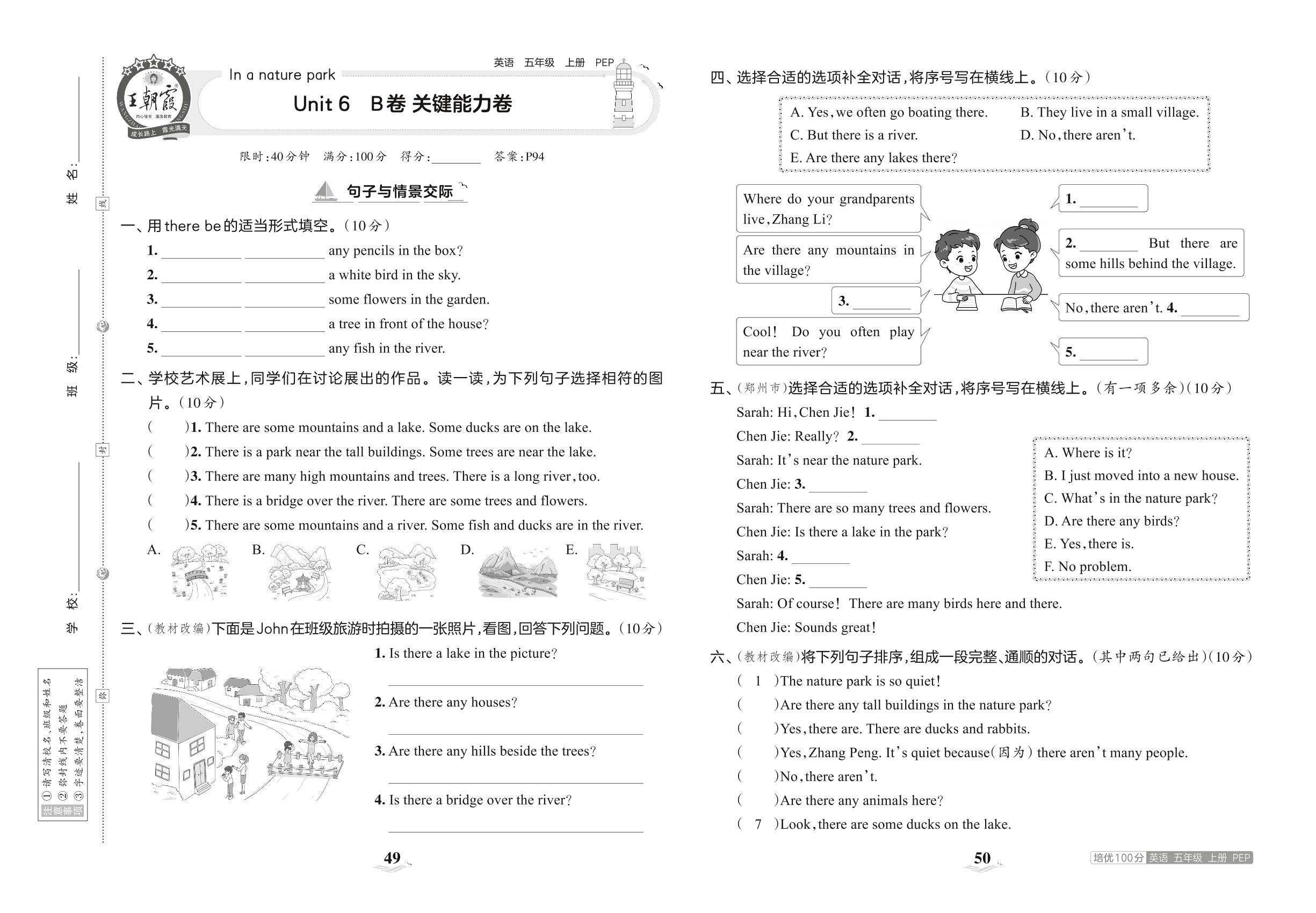 2023上册五年级英语人教PEP版 Unit 6 B卷 关键能力卷