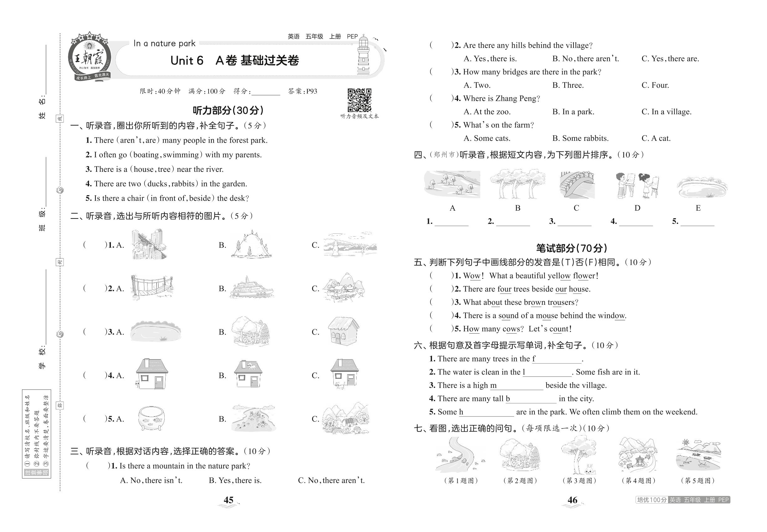 2023上册五年级英语人教PEP版 Unit 6 A卷 基础过关卷