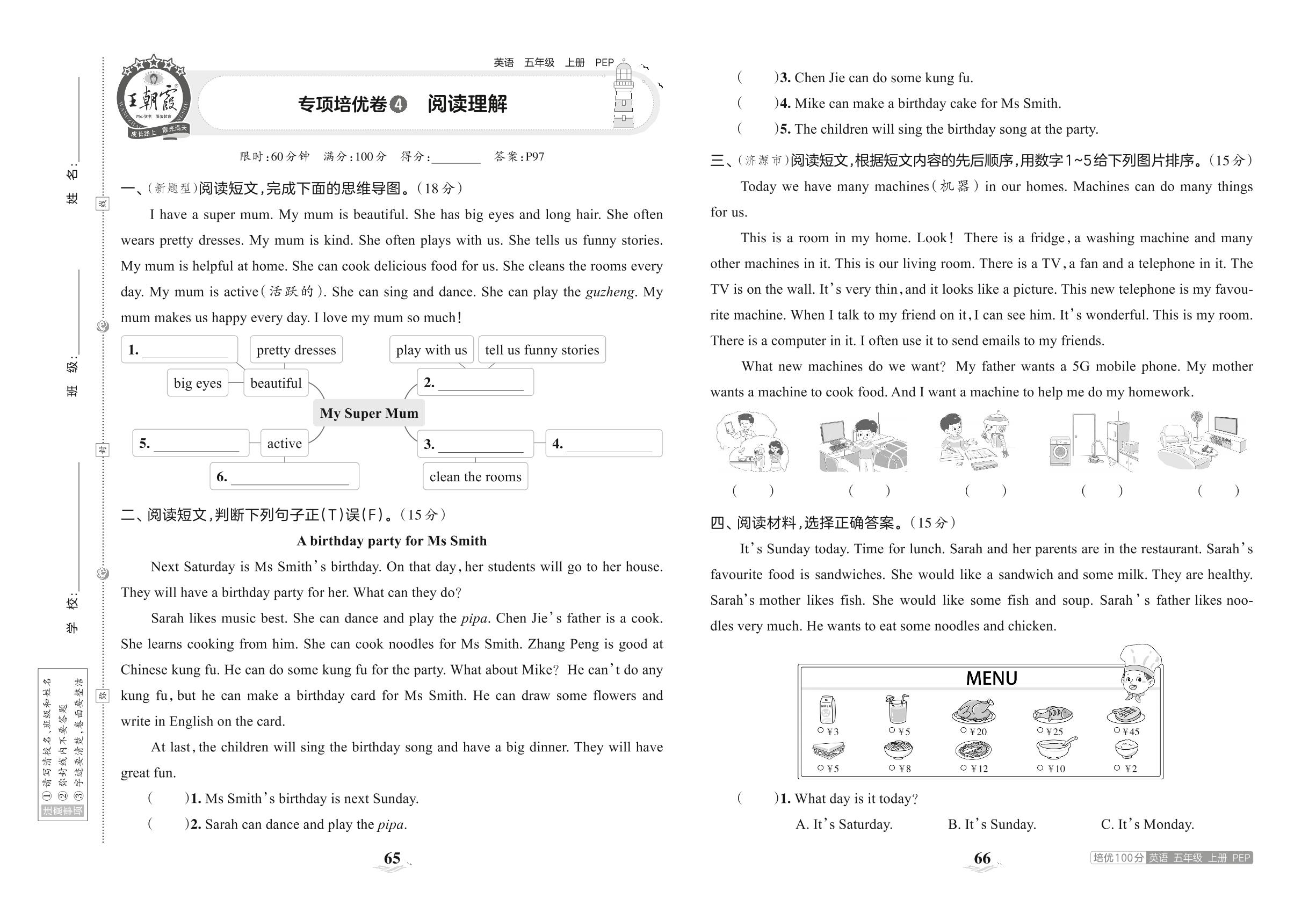 2023上册五年级英语人教PEP版 专项培优卷 4 阅读理解
