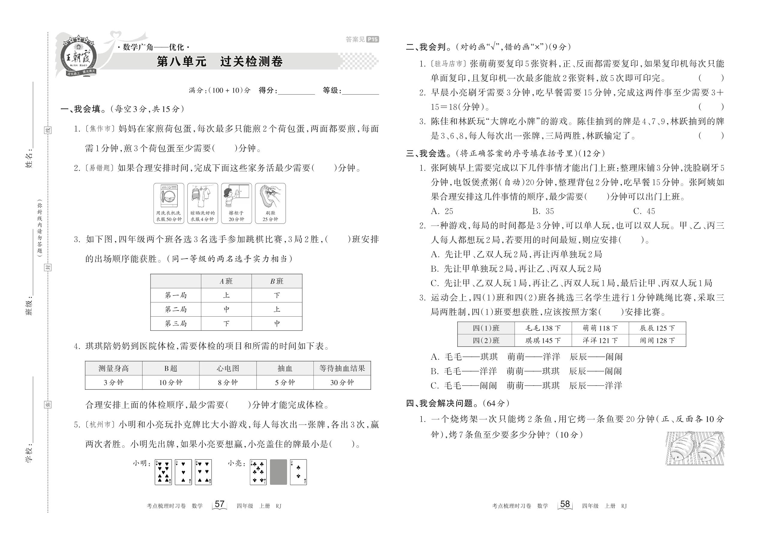 2023上册四年级数学人教版 第八单元 过关检测卷