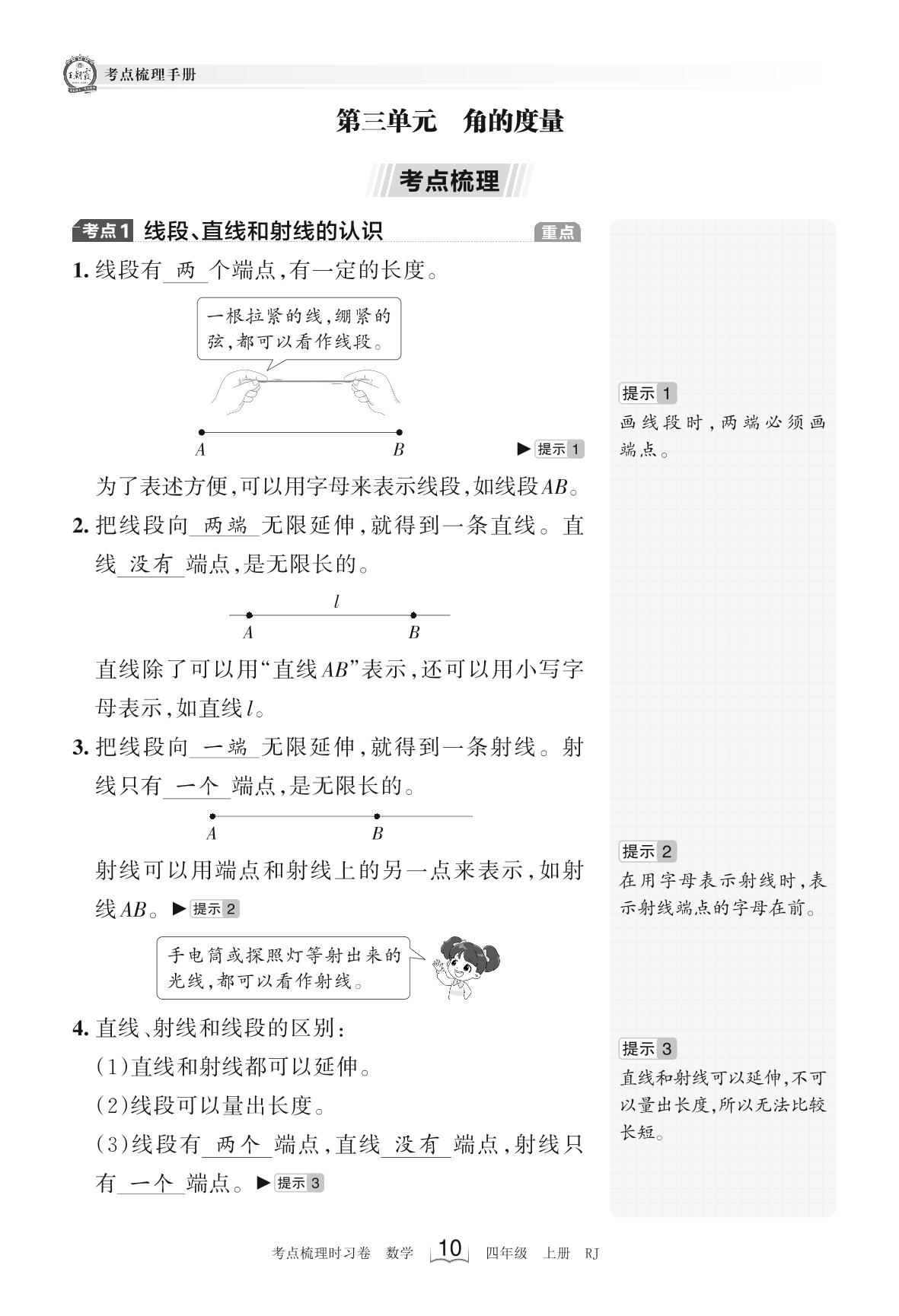 2023上册四年级数学人教版 考点梳理手册——第三单元 角的度量