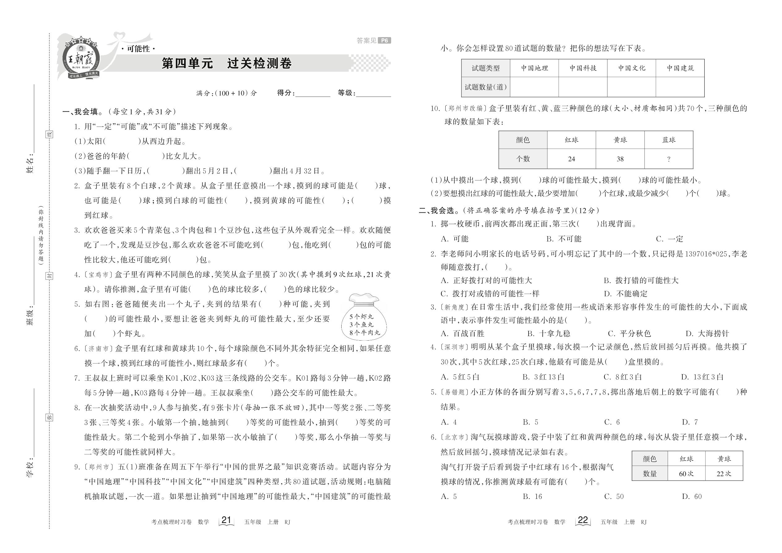 2023上册五年级数学人教版 第四单元 过关检测卷