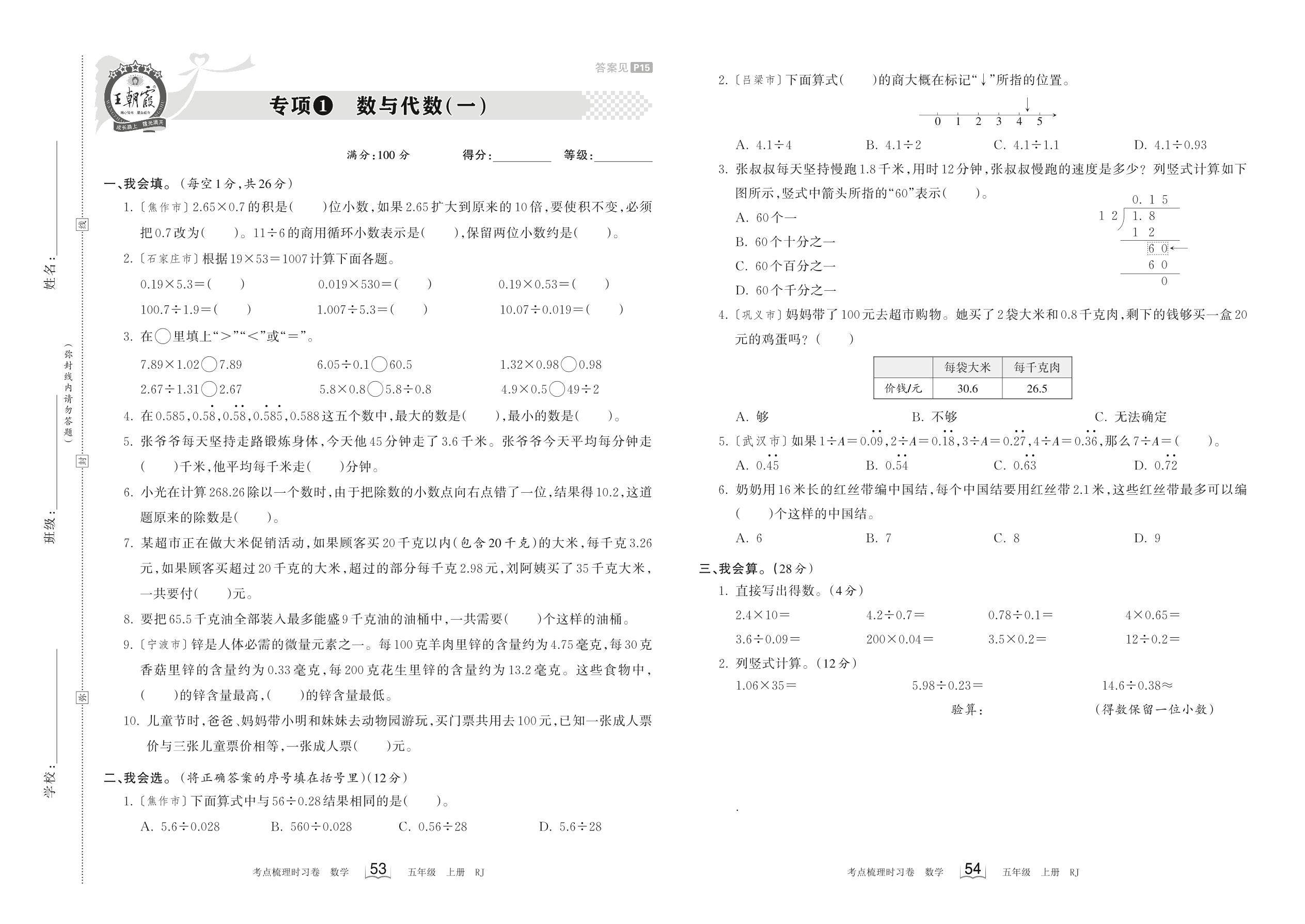 2023上册五年级数学人教版 专项1 数与代数(一)