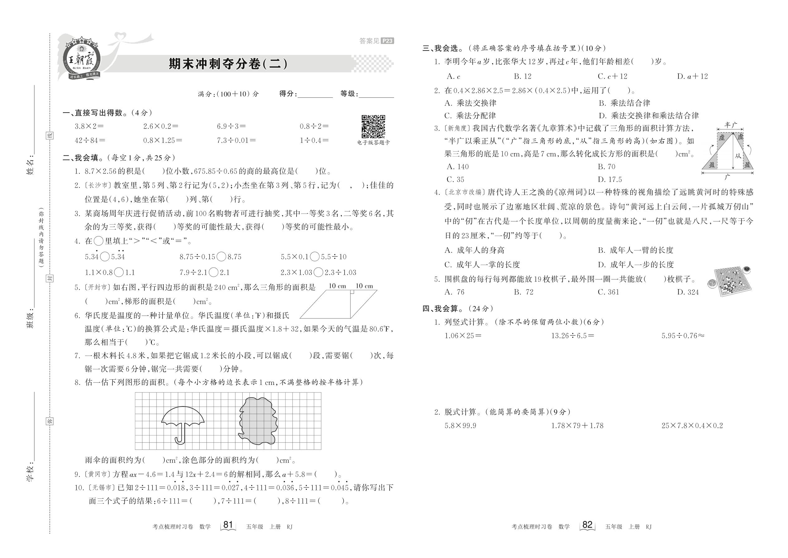 2023上册五年级数学人教版 期末冲刺夺分卷(二)