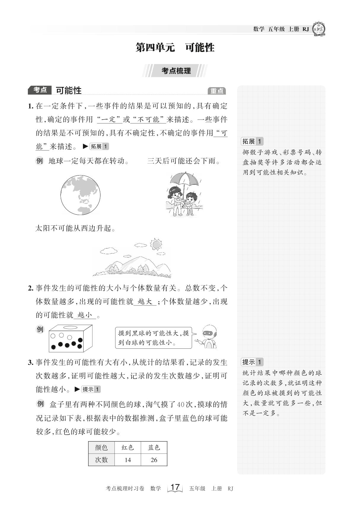 2023上册五年级数学人教版 考点梳理手册——第四单元 可能性