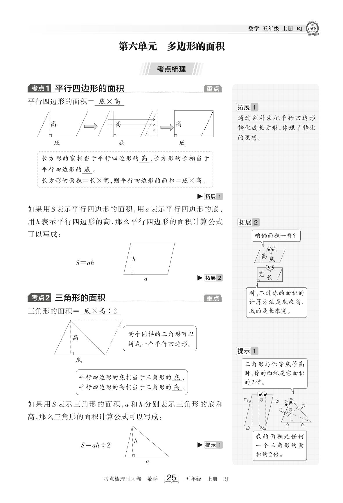 2023上册五年级数学人教版 考点梳理手册——第六单元 多边形的面积