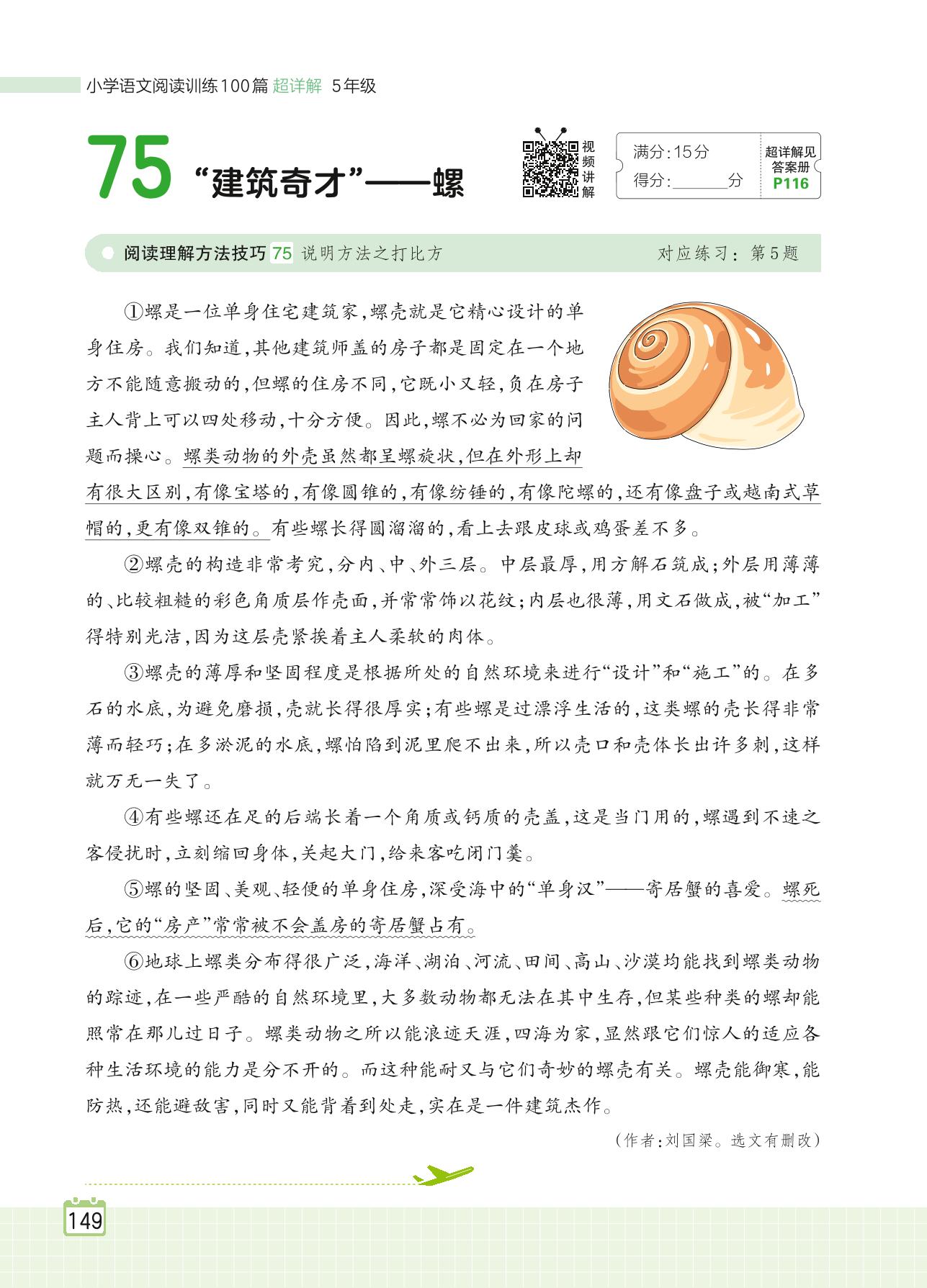 2024全一册五年级语文人教版 专题六 说明文 75 “建筑奇才”——螺