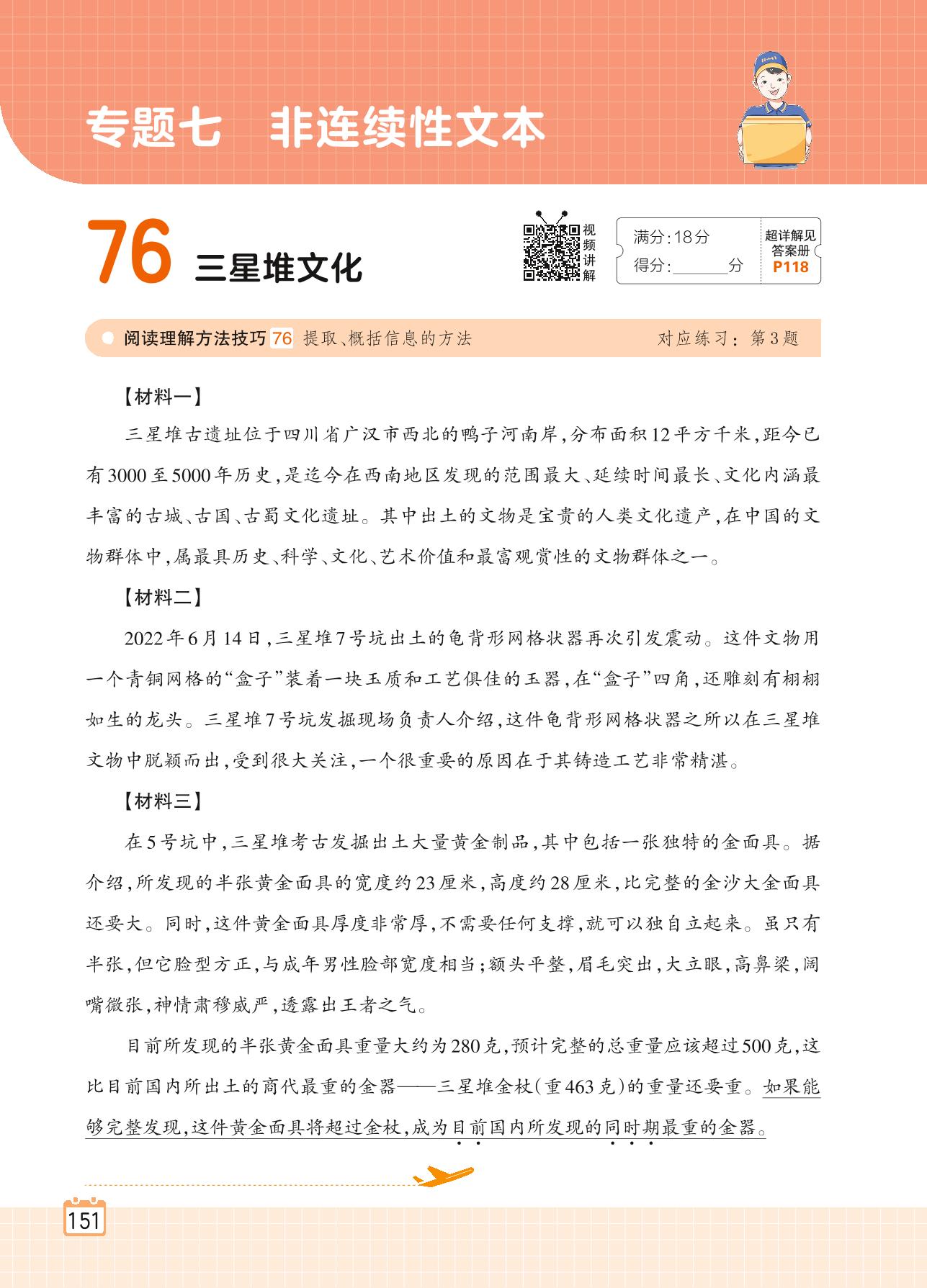 2024全一册五年级语文人教版 专题七 非连续性文本 76 三星堆文化