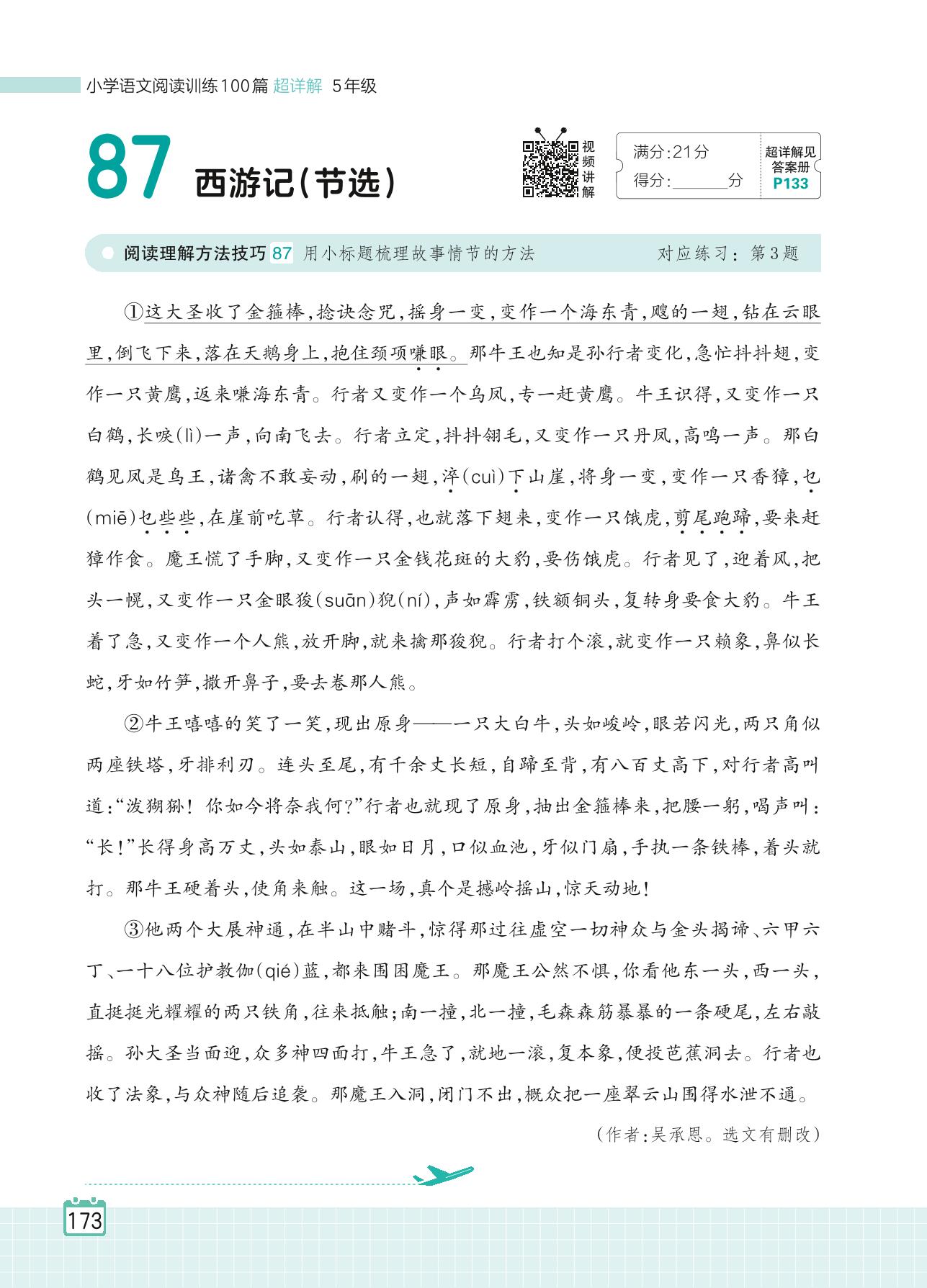 2024全一册五年级语文人教版 专题八 整本书阅读 87 西游记(节选)