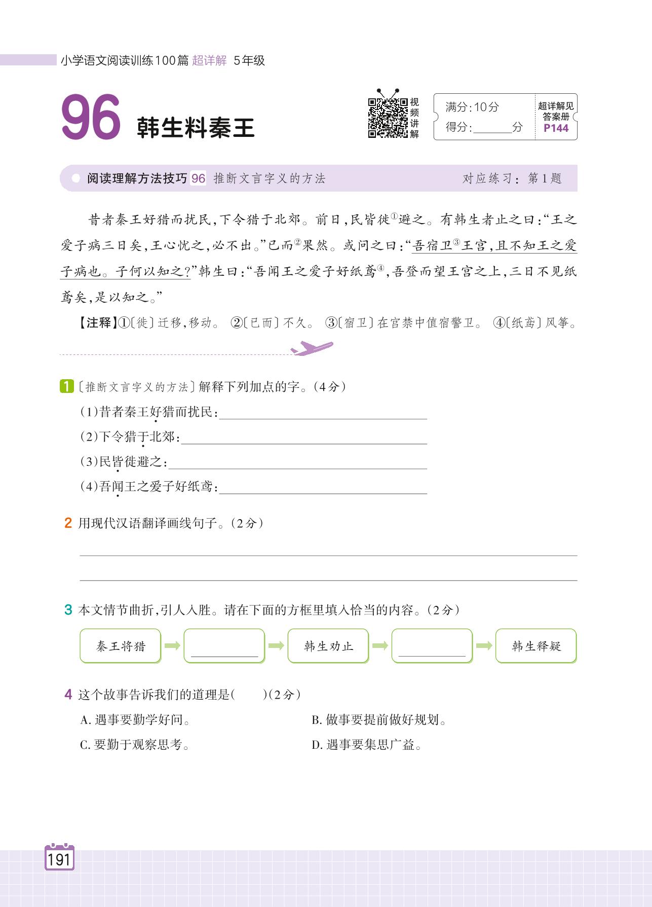 2024全一册五年级语文人教版 专题九 古诗文 96 韩生料秦王