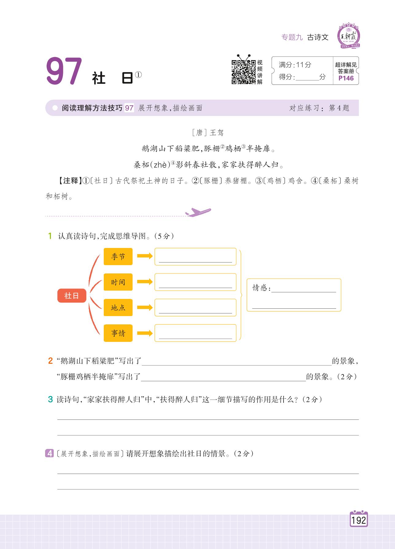 2024全一册五年级语文人教版 专题九 古诗文 97 社日