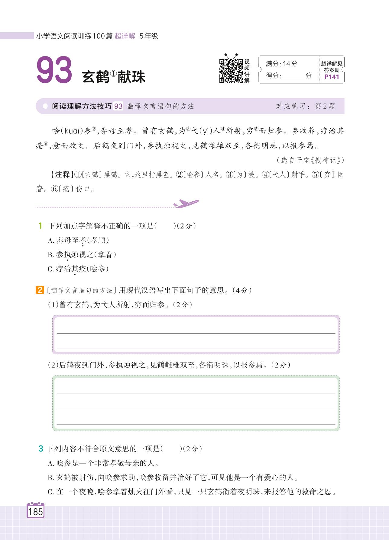 2024全一册五年级语文人教版 专题九 古诗文 93 玄鹤献珠