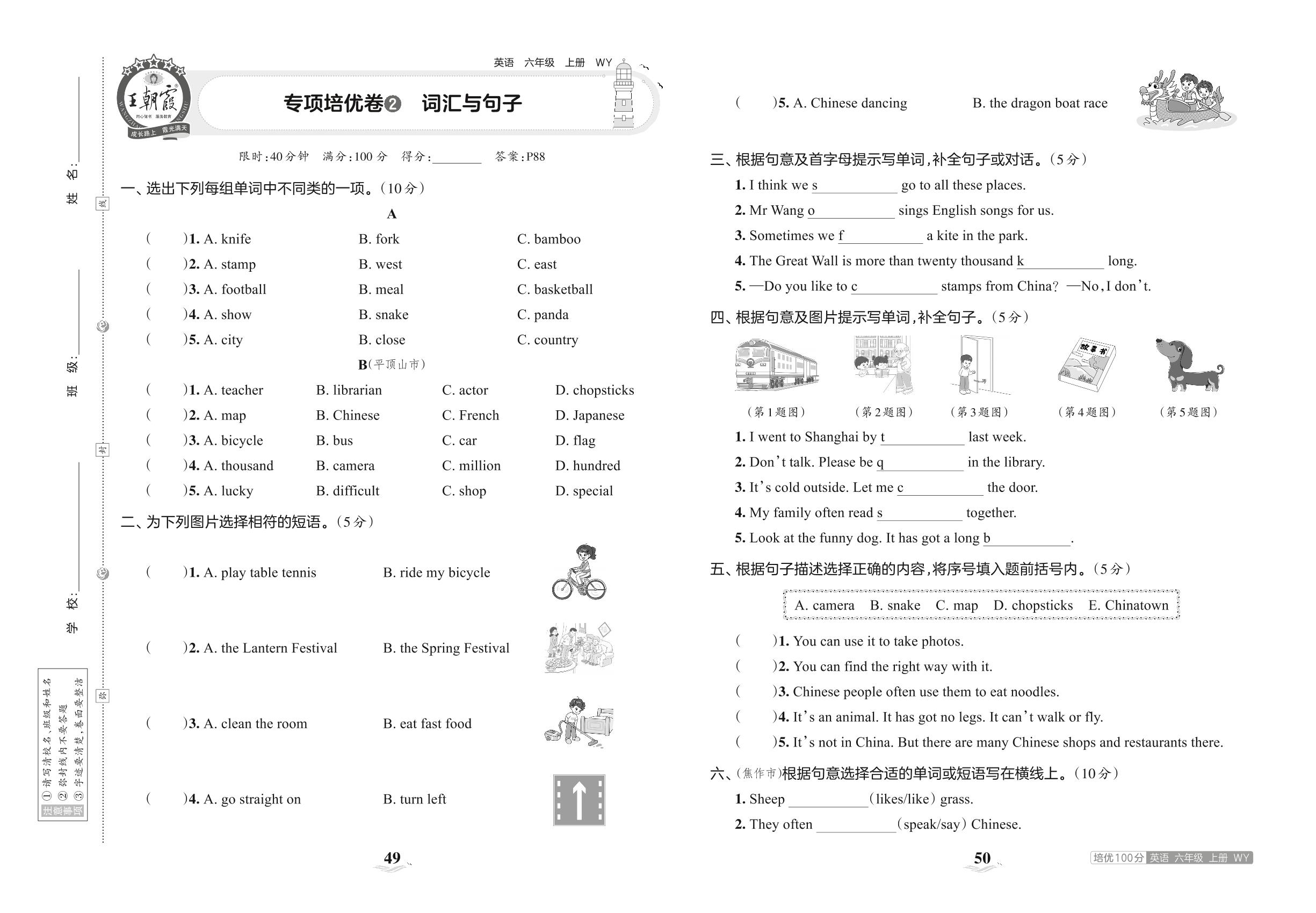 2023上册六年级英语外研版 专项培优卷 2 语音与词汇