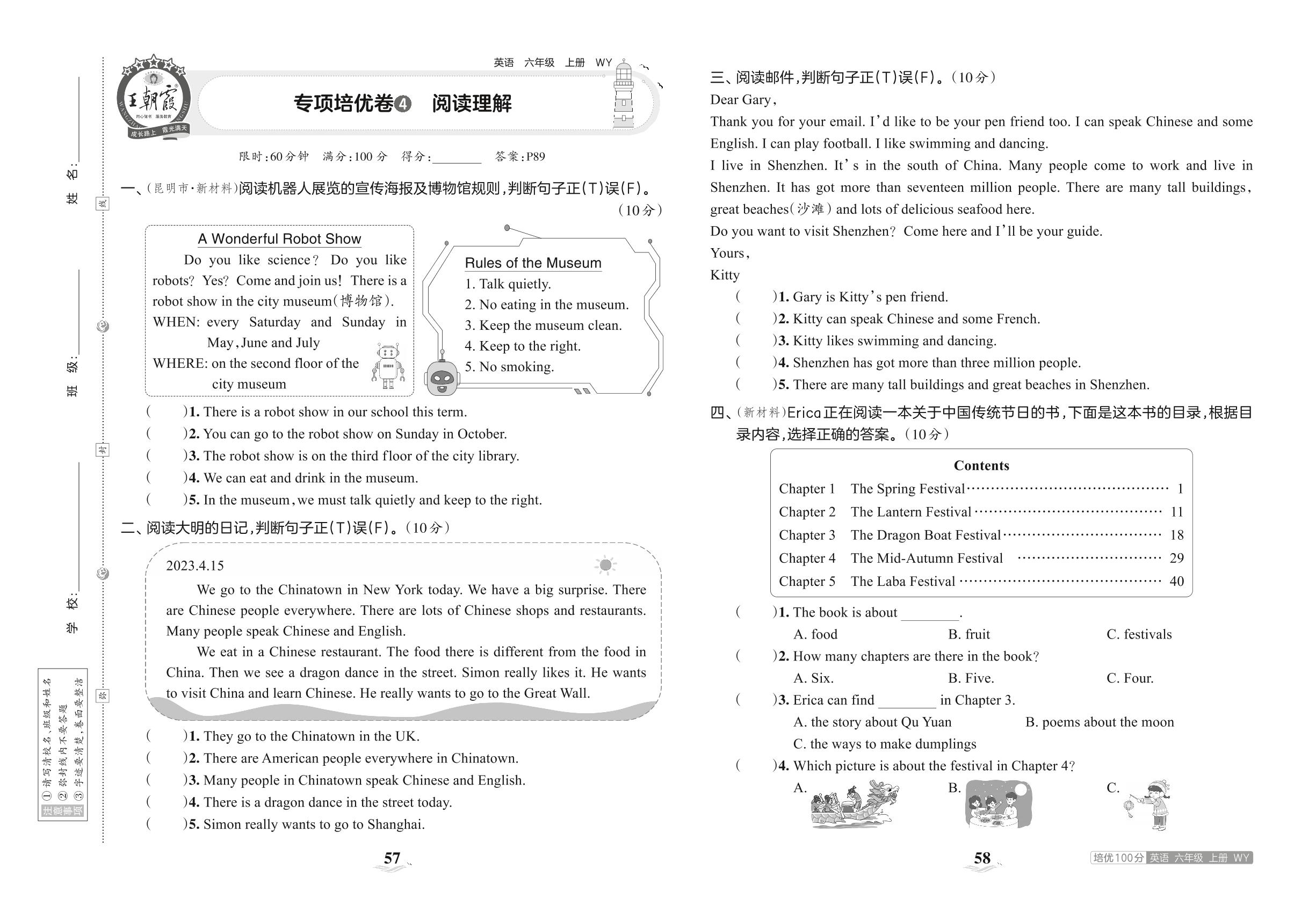 2023上册六年级英语外研版 专项培优卷 4 阅读理解