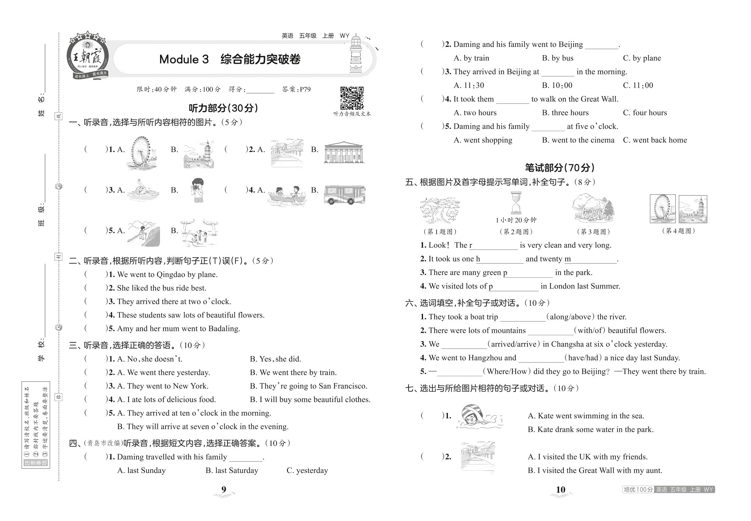 2023上册五年级英语外研版 Module 3 综合能力突破卷