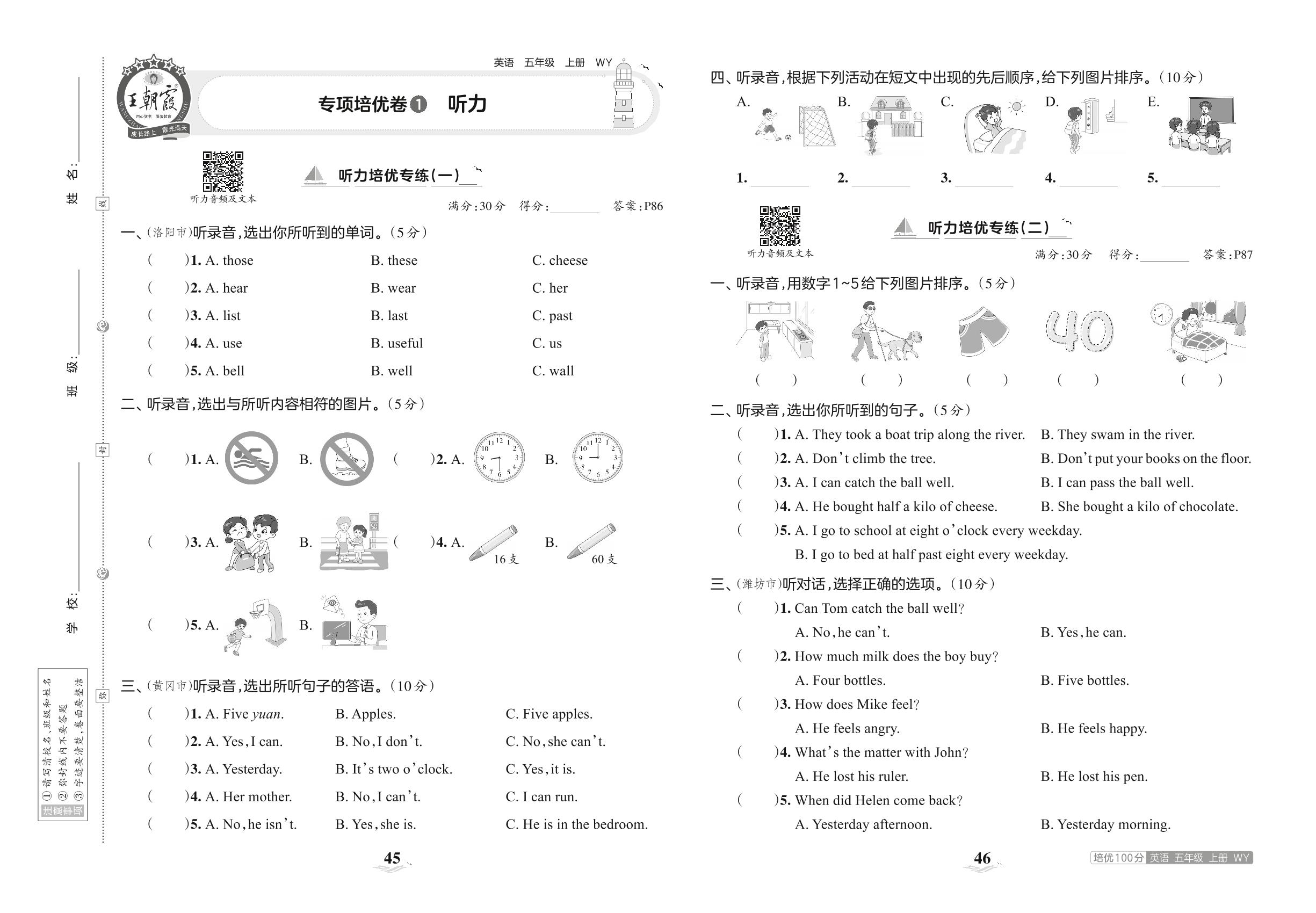 2023上册五年级英语外研版 专项培优卷 1 听力