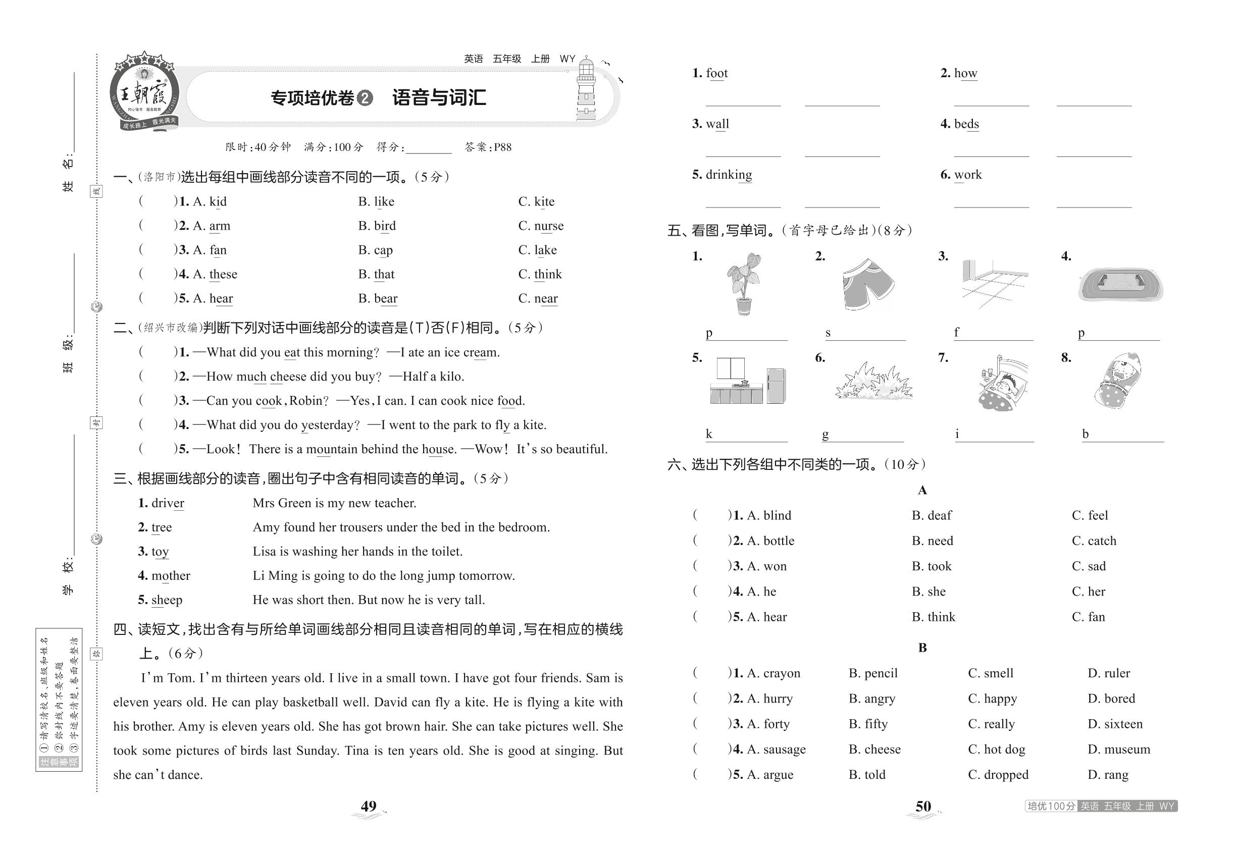 2023上册五年级英语外研版 专项培优卷 2 语音与词汇