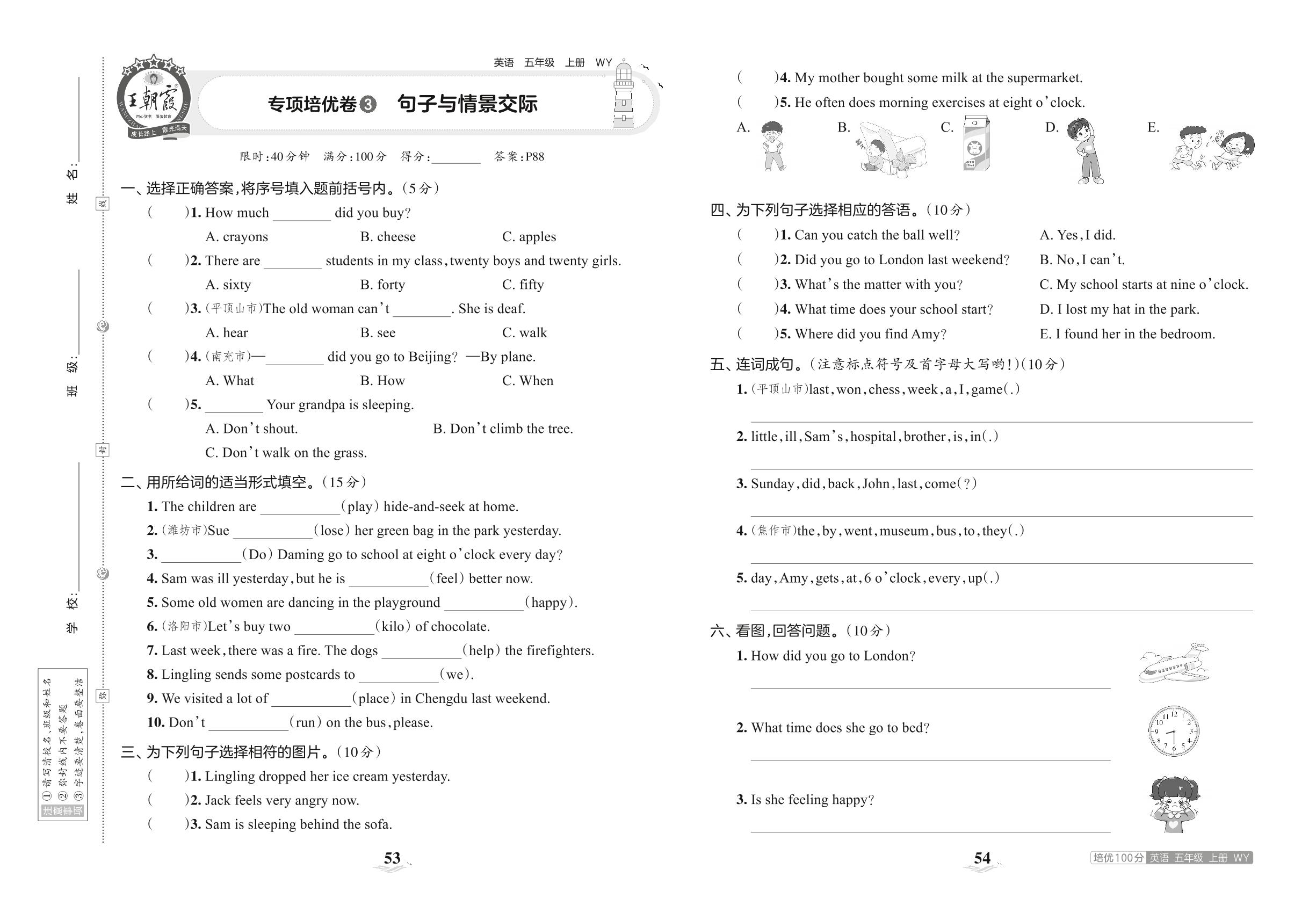 2023上册五年级英语外研版 专项培优卷 3 句子与情景交际