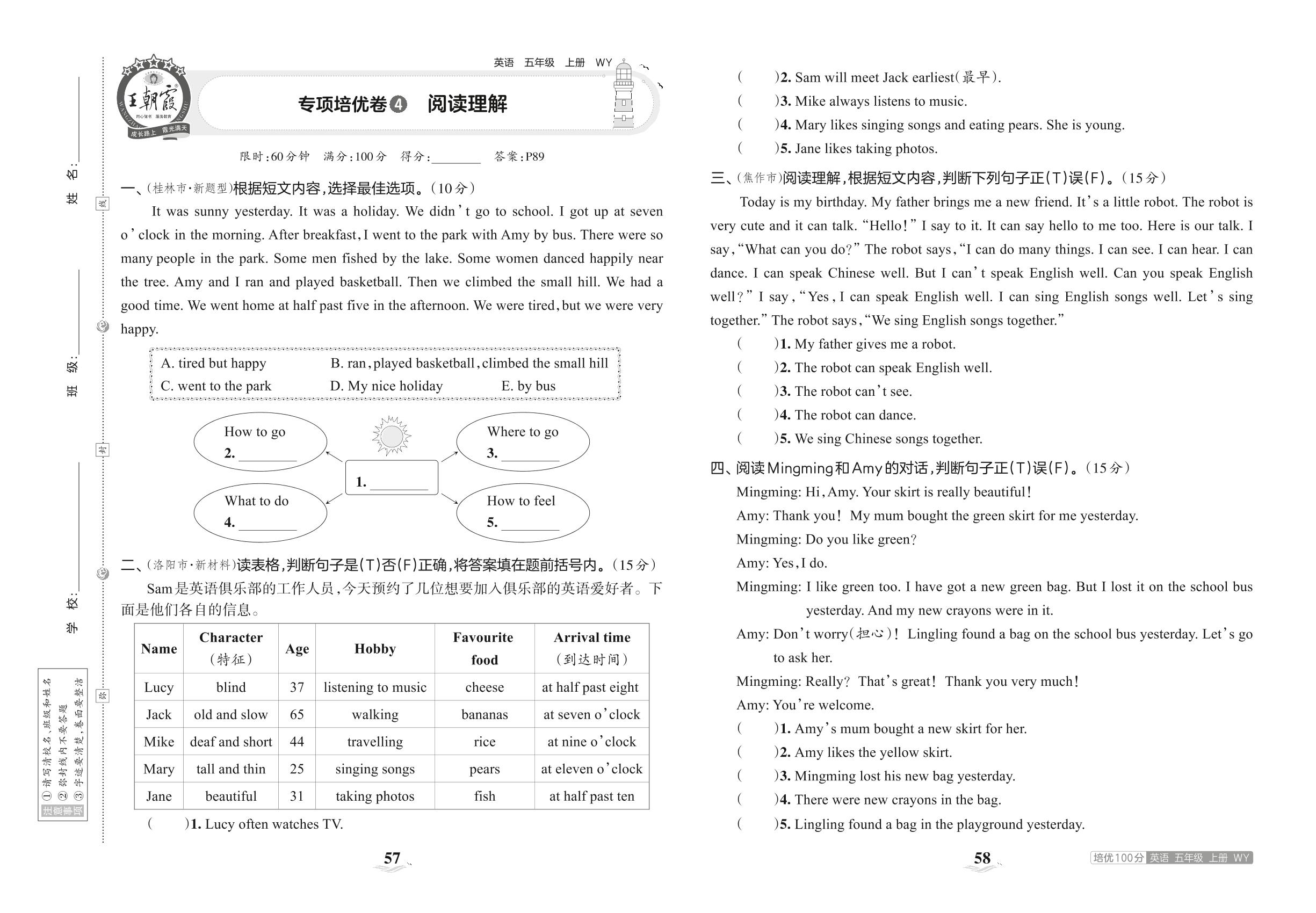 2023上册五年级英语外研版 专项培优卷 4 阅读理解
