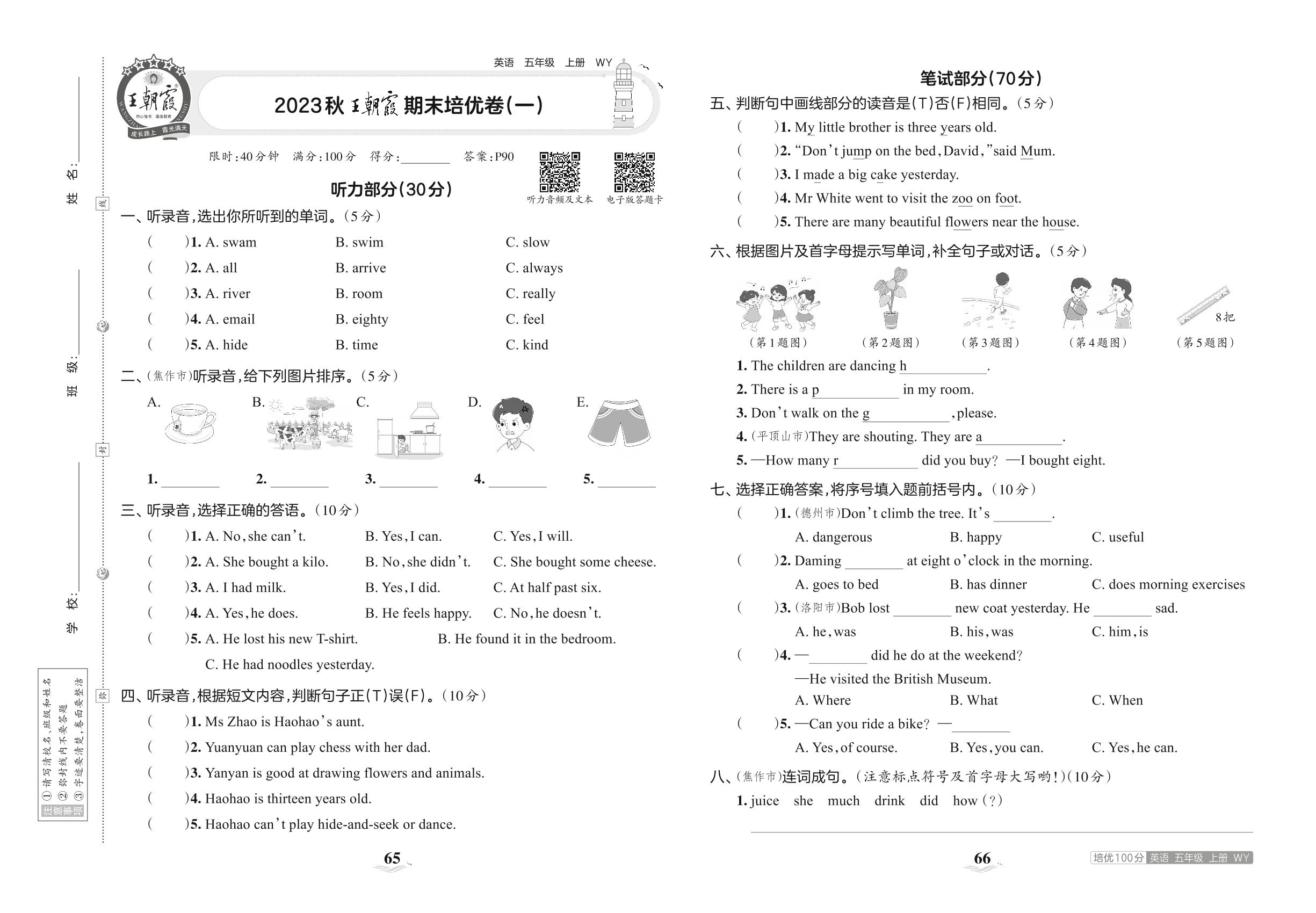 2023上册五年级英语外研版 王朝霞期末培优卷(一)