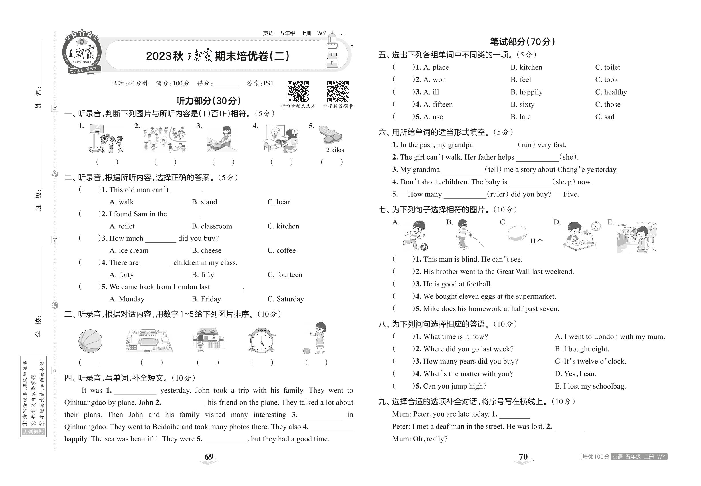 2023上册五年级英语外研版 王朝霞期末培优卷(二)