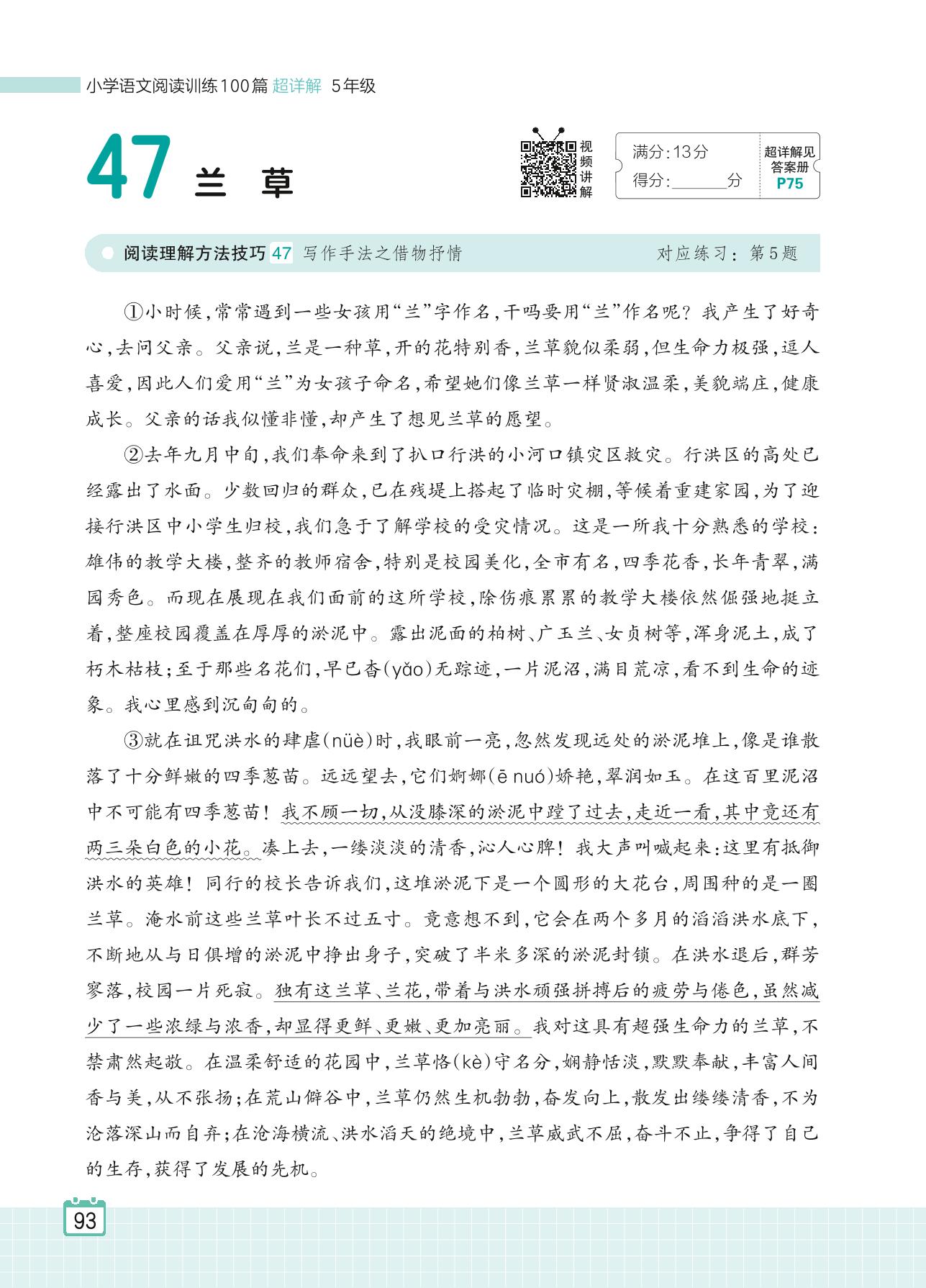 2024全一册五年级语文人教版 专题三 写景状物 47 兰草