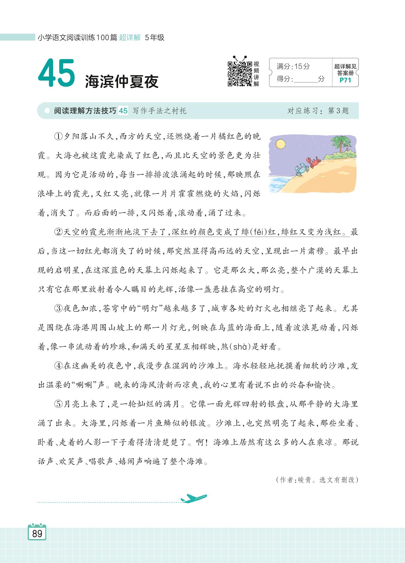 2024全一册五年级语文人教版 专题三 写景状物 45 海滨仲夏夜