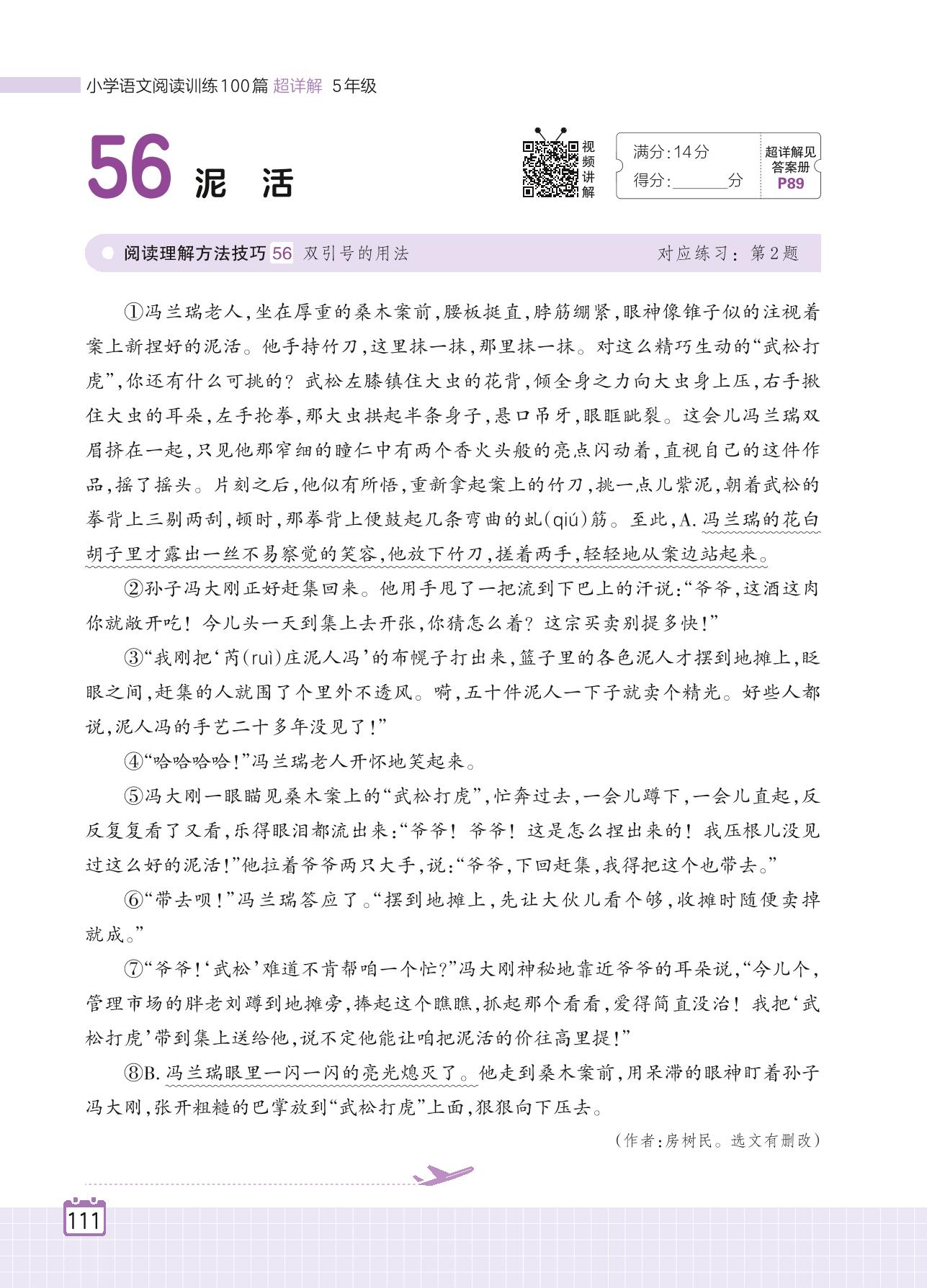 2024全一册五年级语文人教版 专题四 小说 56 泥活