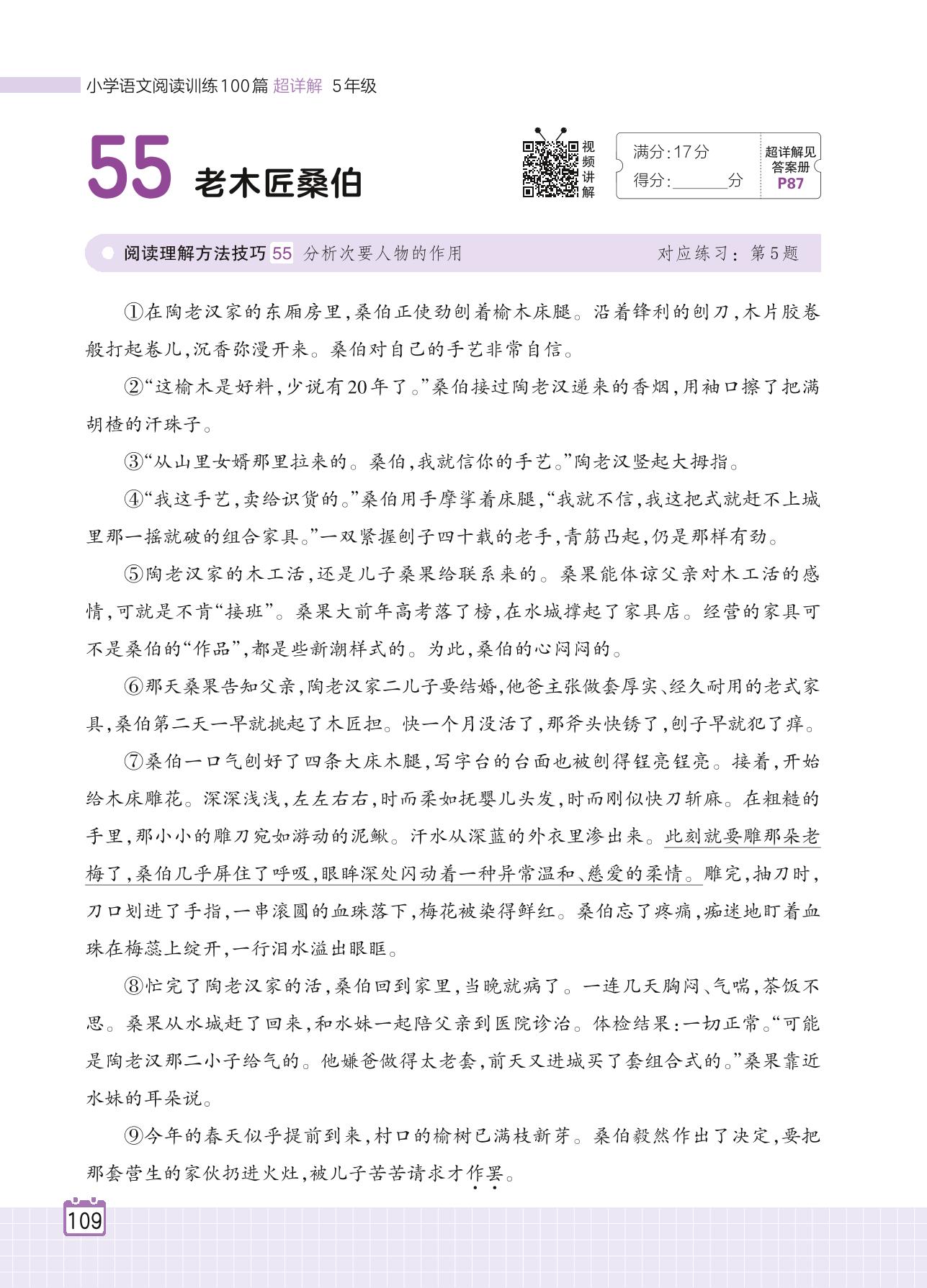 2024全一册五年级语文人教版 专题四 小说 55 老木匠桑伯