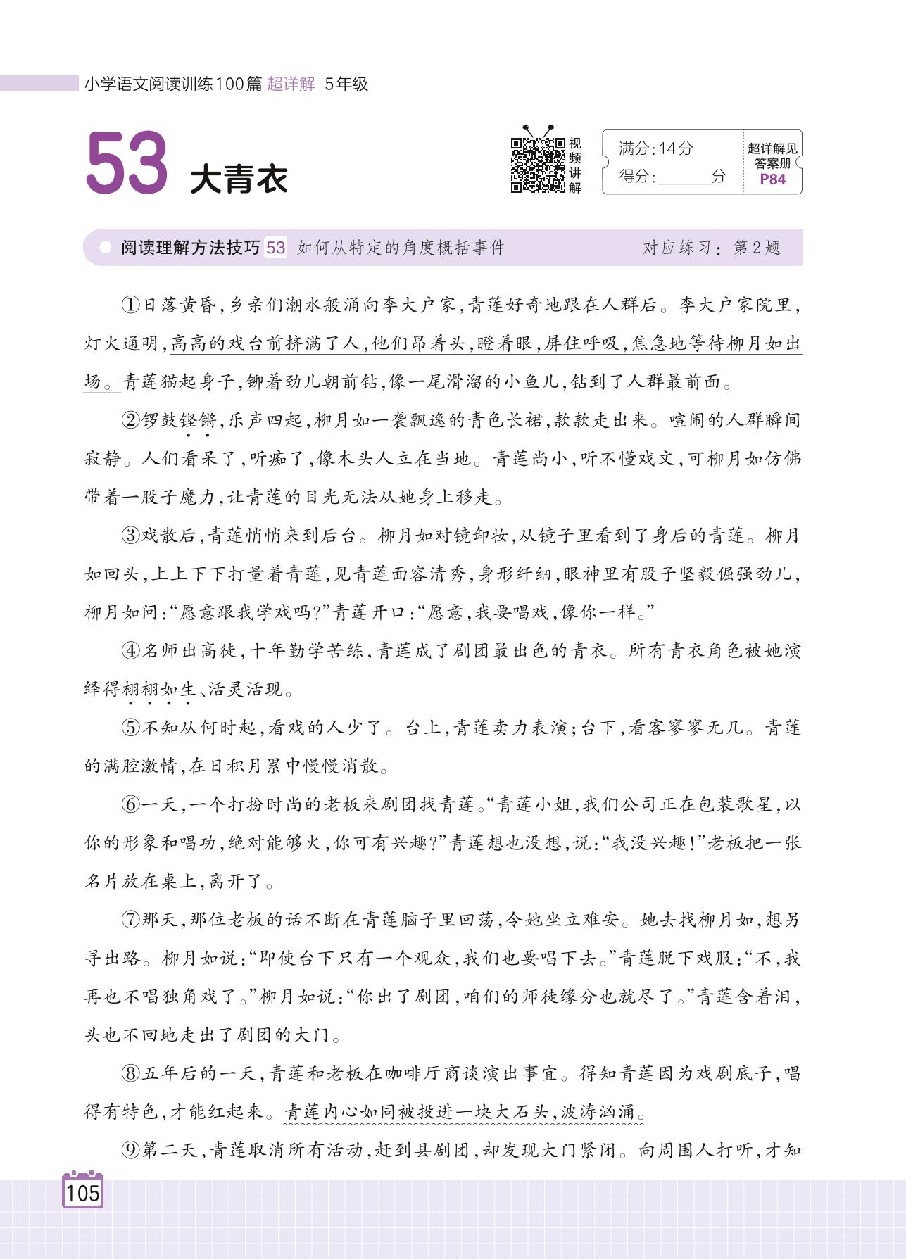 2024全一册五年级语文人教版 专题四 小说 53 大青衣