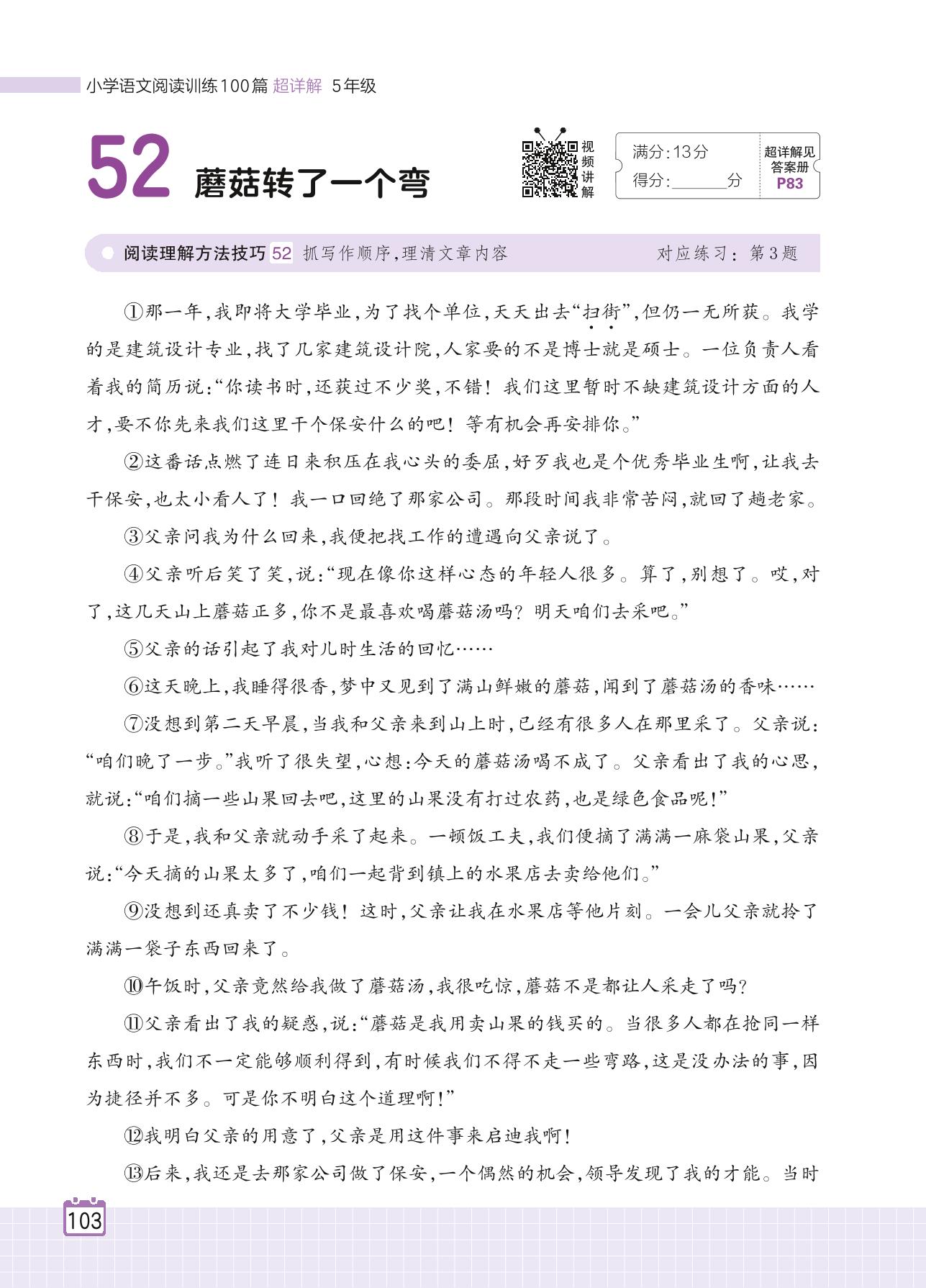 2024全一册五年级语文人教版 专题四 小说 52 蘑菇转了一个弯