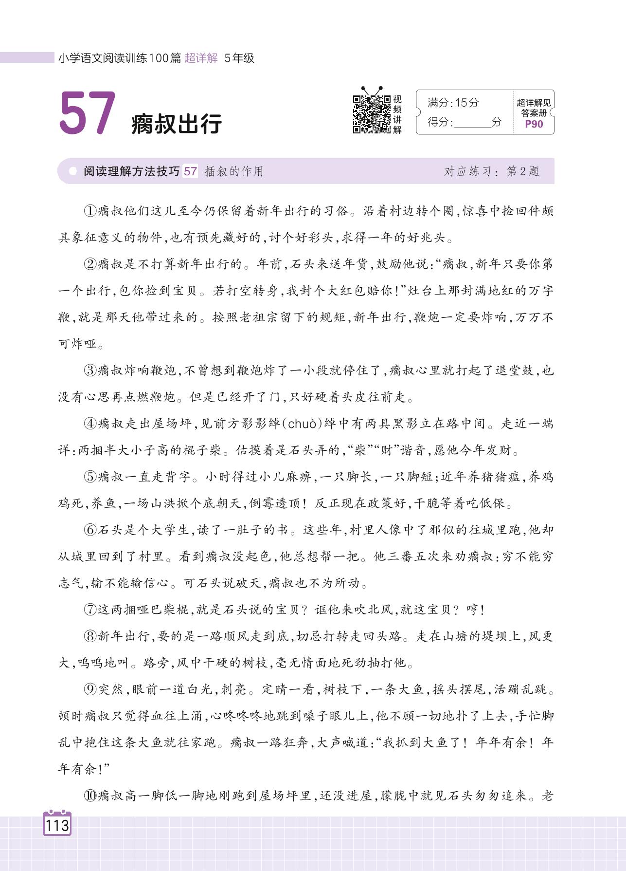 2024全一册五年级语文人教版 专题四 小说 57 瘸叔出行