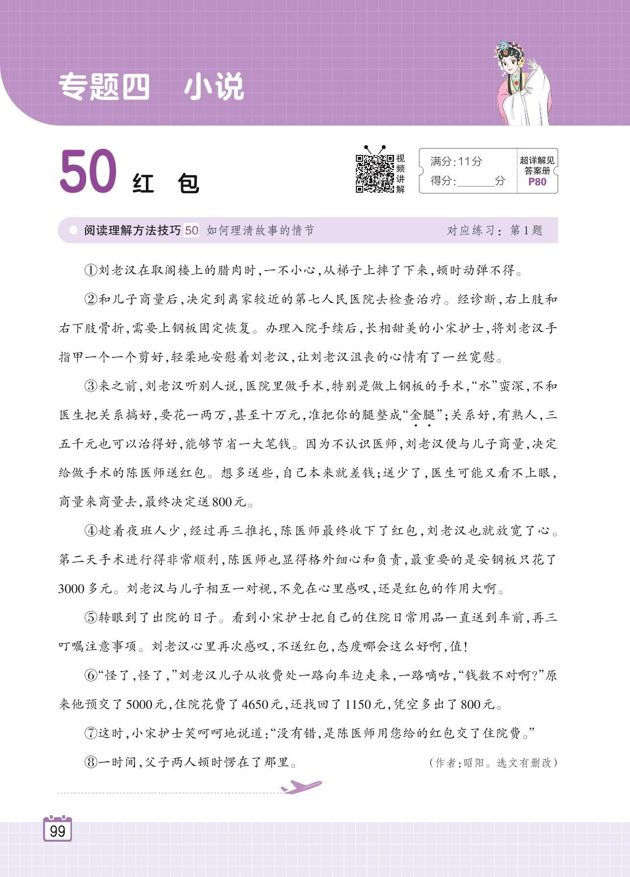 2024全一册五年级语文人教版 专题四 小说 50 红包