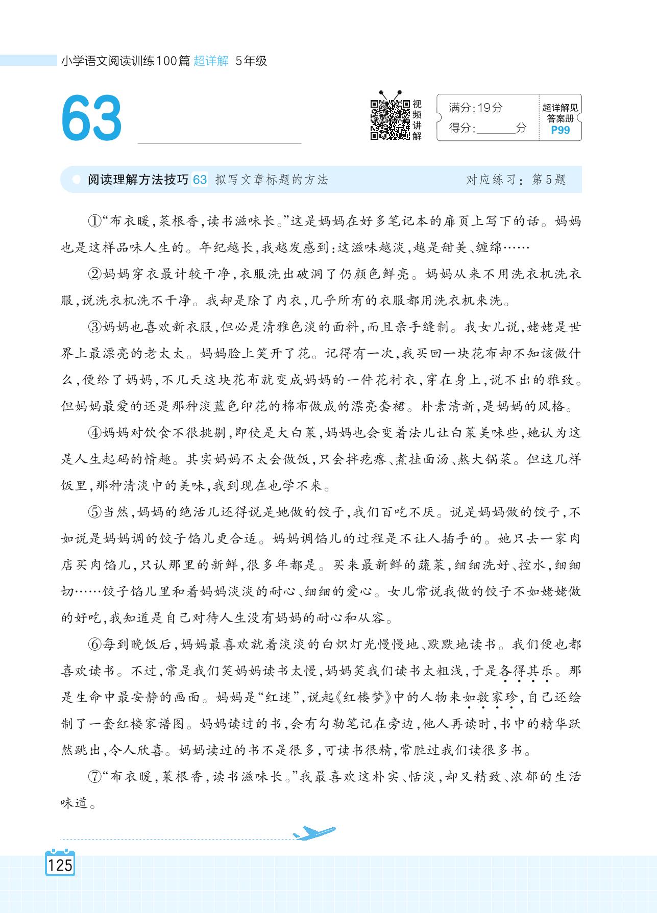 2024全一册五年级语文人教版 专题五 散文 63 ________